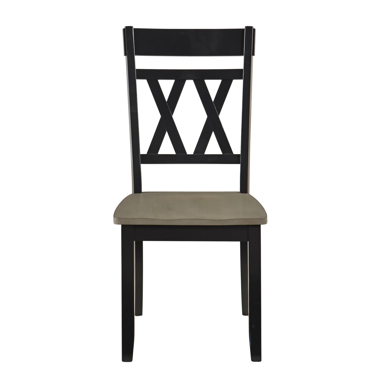 Contemporary Farmhouse Style Round Dining 5Pcs Set Table and 4x Side Chairs Wooden Furniture Antique White Gray Black Finish is available