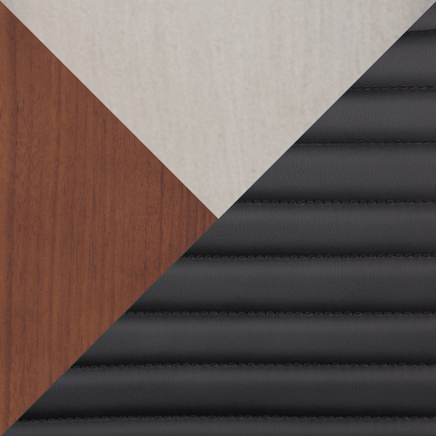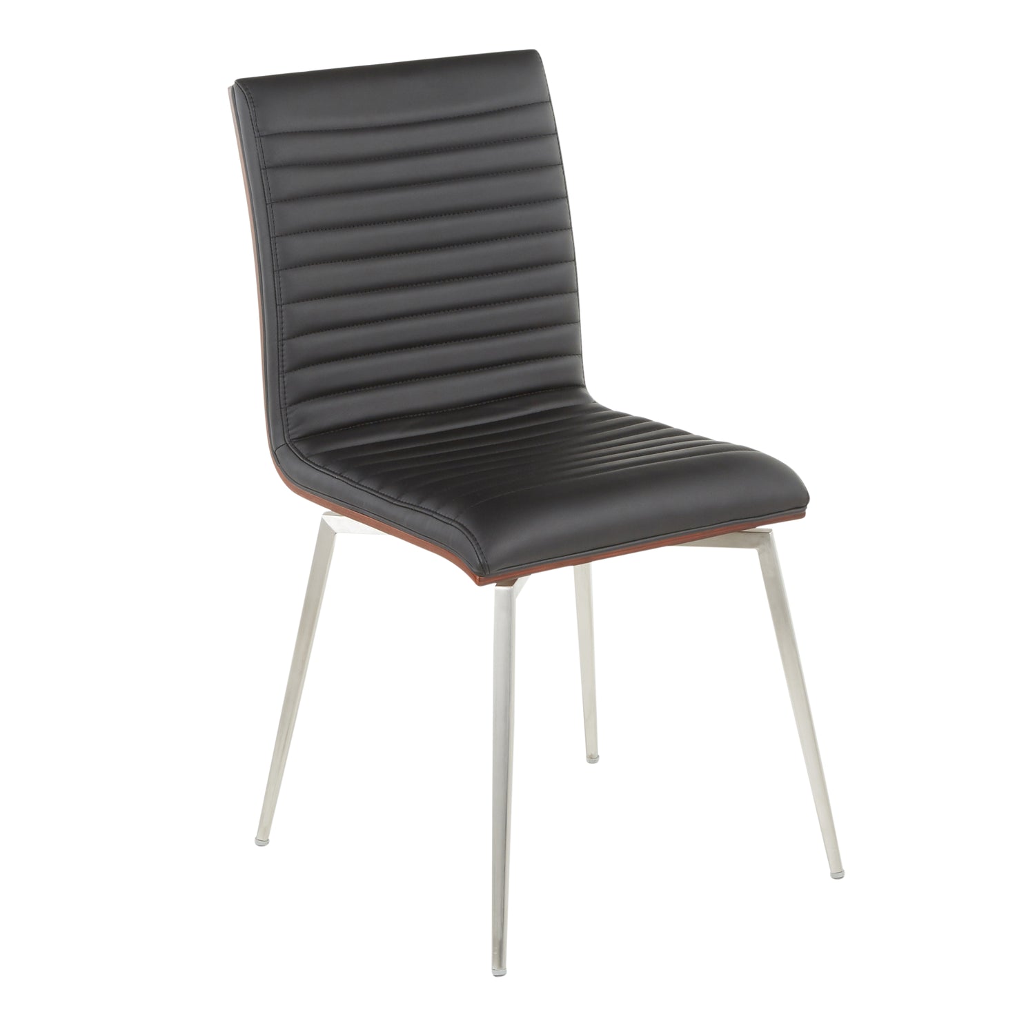 Fuji-Mason Swivel Contemporary Dining Set Dining Set in Brushed Stainless Steel, Clear Glass, Walnut Wood and Black Faux Leather by LumiSource - 5 Piece is available