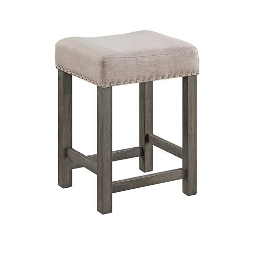 The Wandella four-piece counter height table set comes with a table and three stools. The table features three open storage compartments and a marble top. Not just for the dining room, this uniquely styled table is equally handy behind a sofa or hanging out next to a wall, ready to serve all your entertaining needs. The stools are upholstered in beige fabric with nailhead trim. The Wandella table set is constructed from a wooden frame, marble top, and selected veneers to prevent scratches and wear for durability. In a weathered gray finish that fits easily into traditional and contemporary homes.