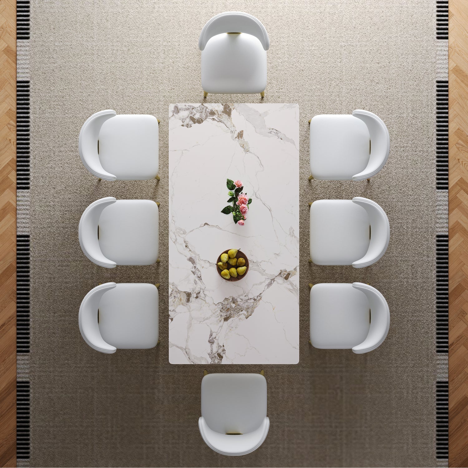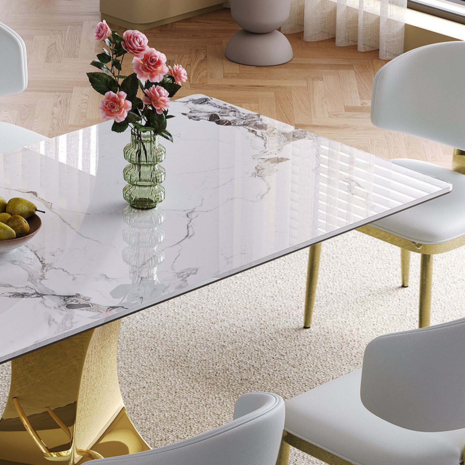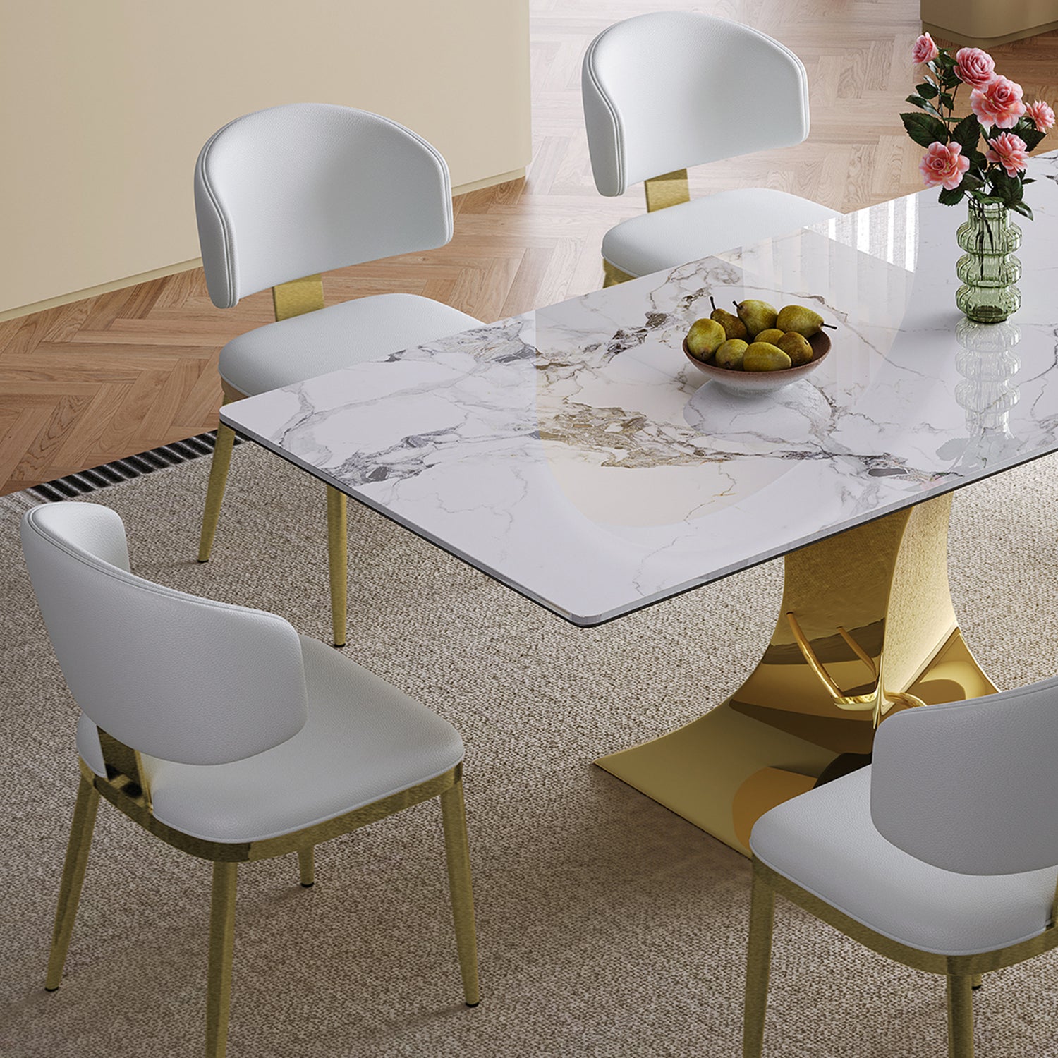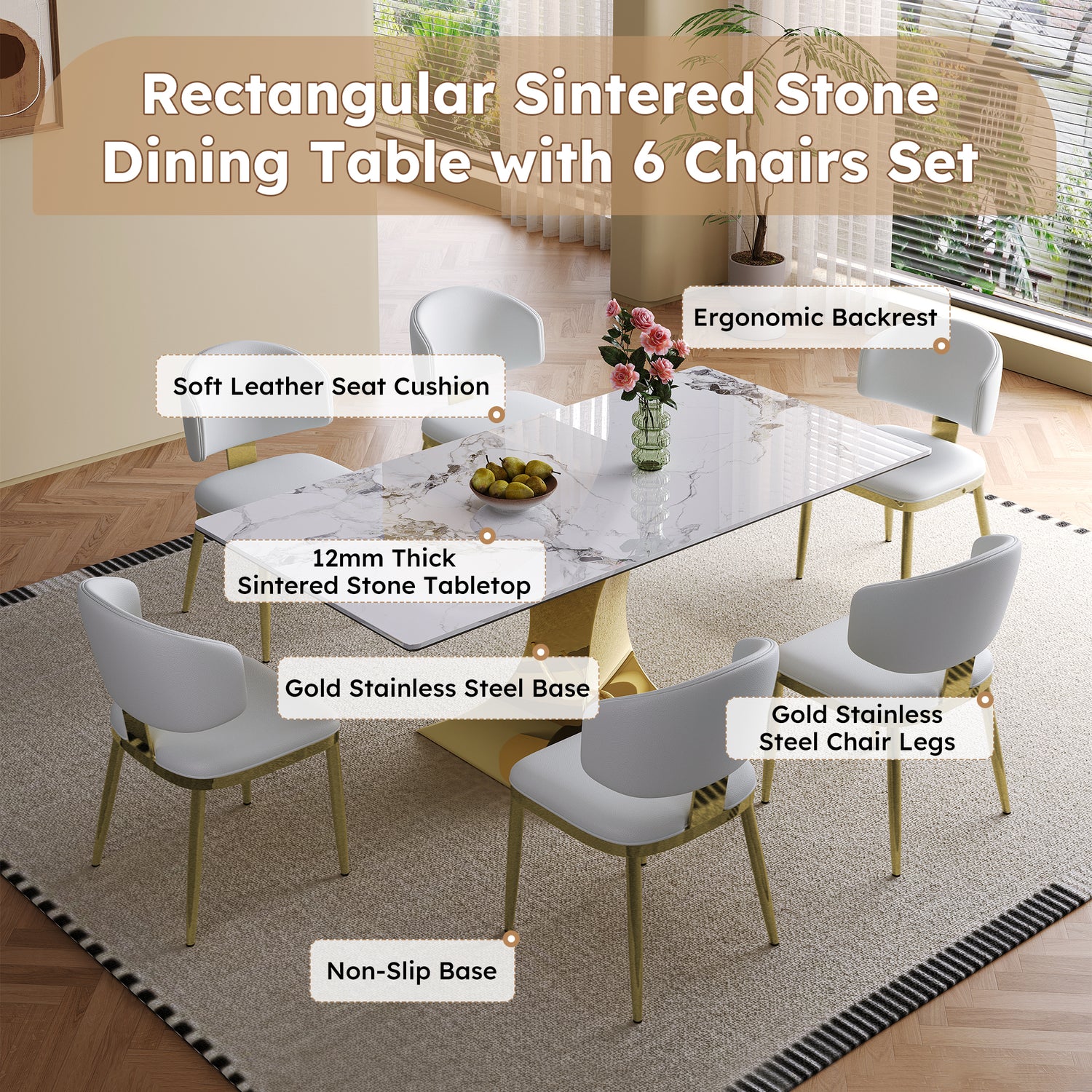 - Safe edge treatment: The dining table surface is a smooth white rock slab with a thickness of 12mm, and the edge of the table top is treated with humanized smooth treatment to prevent collisions and make your family and pets feel more at ease at home.
