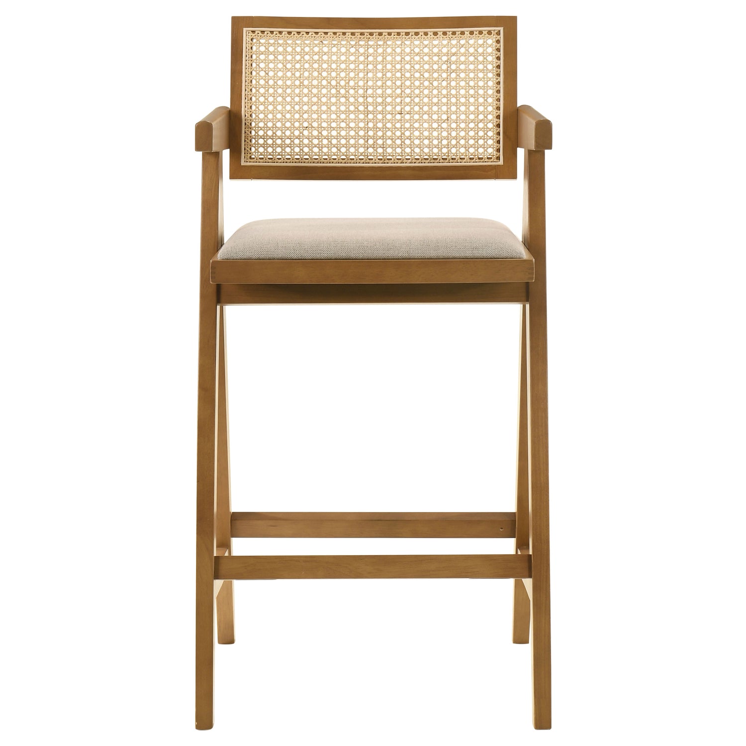 Kane Solid Wood Bar Stool with Woven Rattan Back and Upholstered Seat Light Walnut (Set of 2) | Coaster is available