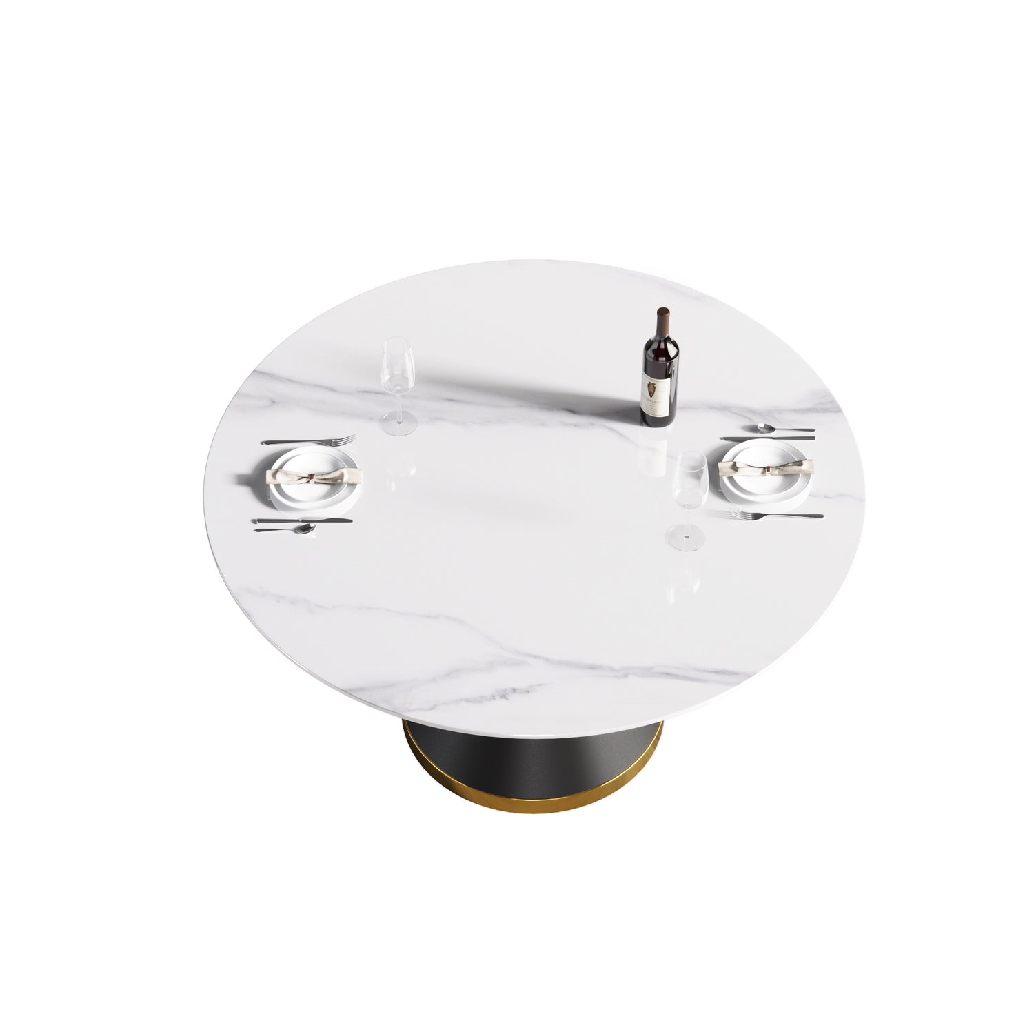- [Strong dining table panel & easy to clean] Desktop is one of the strongest surfaces, made of sintered stone, which is pressed into a blade shape after heating, providing you with a desktop that can be used for many years. This material can prevent burns, stains and scratches, and has the characteristics of heat resistance, fire resistance and antifouling.
