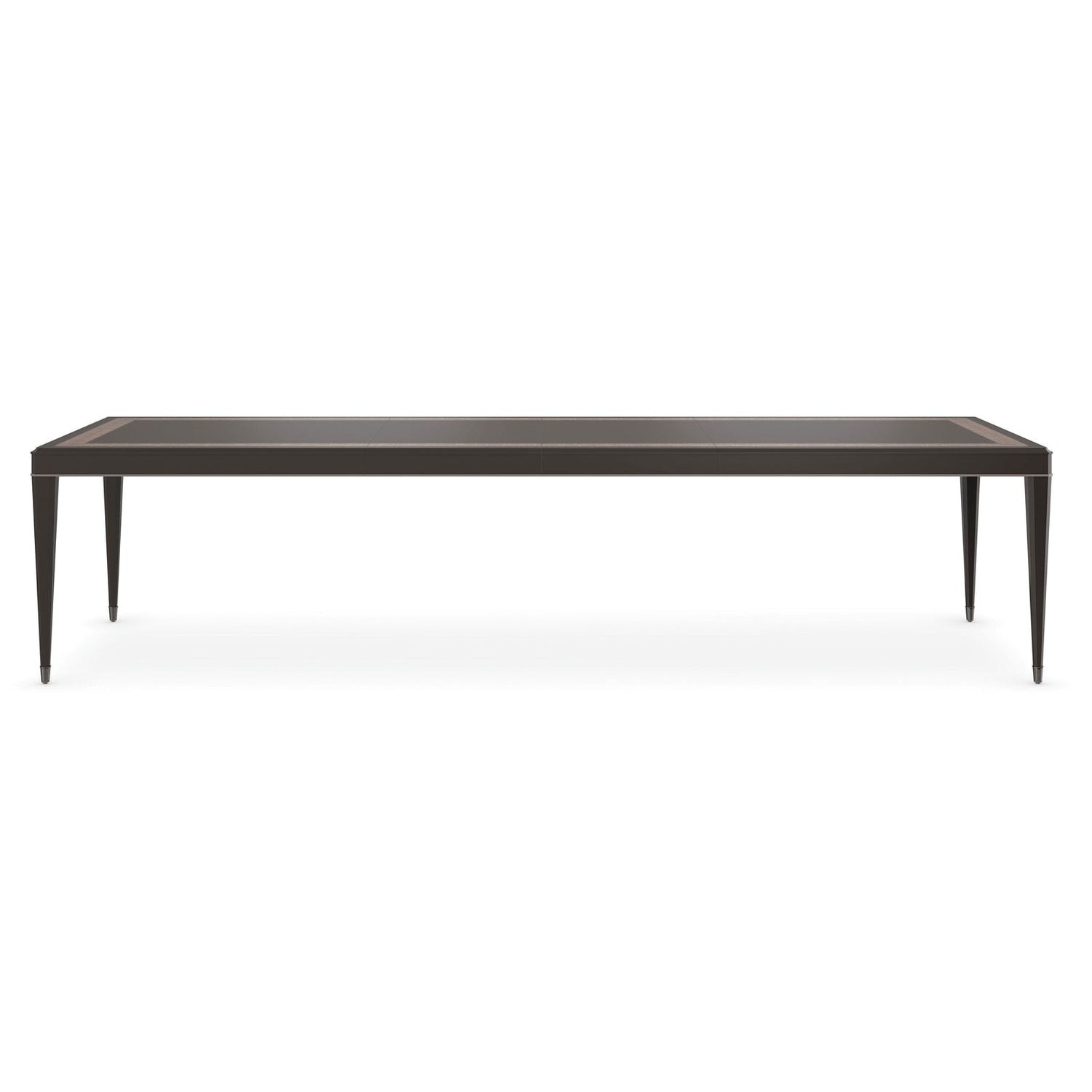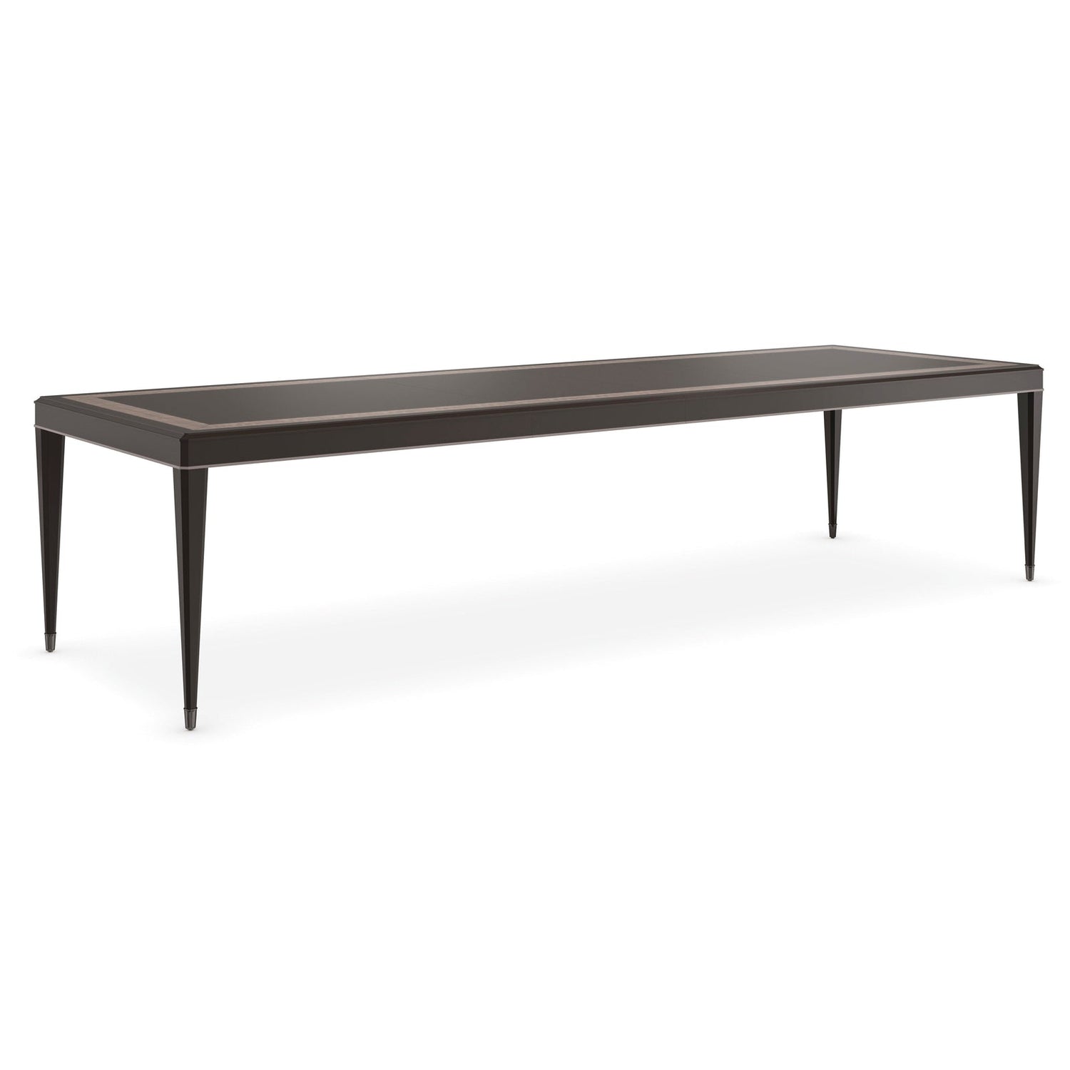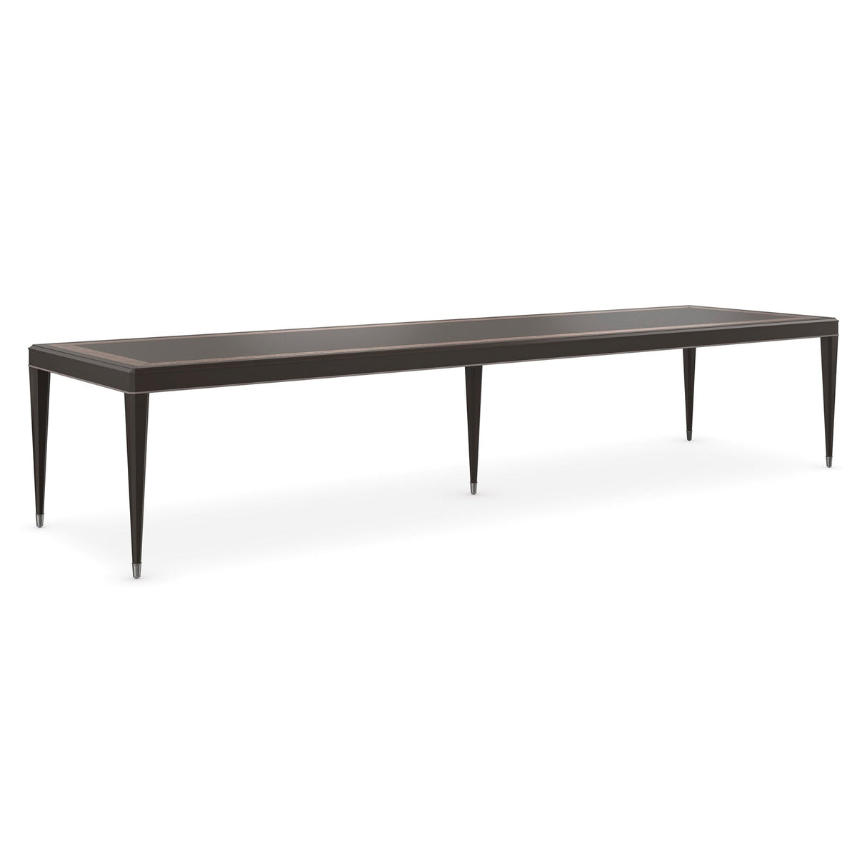 - With parallel lines reminiscent of a musical staff, an inlaid border of Dark Tiger Maple dramatically frames the top of this expansive dining table.