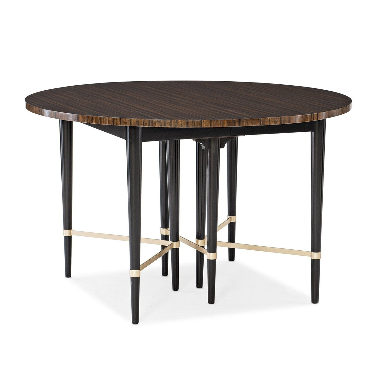 - A deep Black Saddle finish adds depth to its legs and apron while a Neutral Metallic highlights the stretchers.