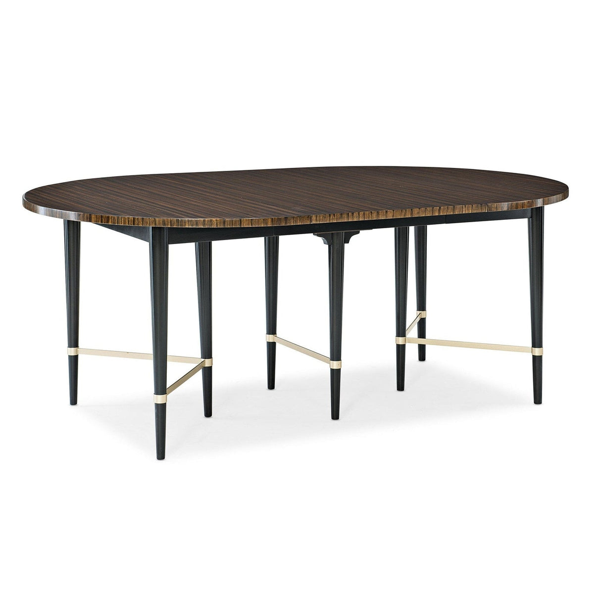 - Legs and apron finished in Black Saddle with stretchers in Neutral Metallic.