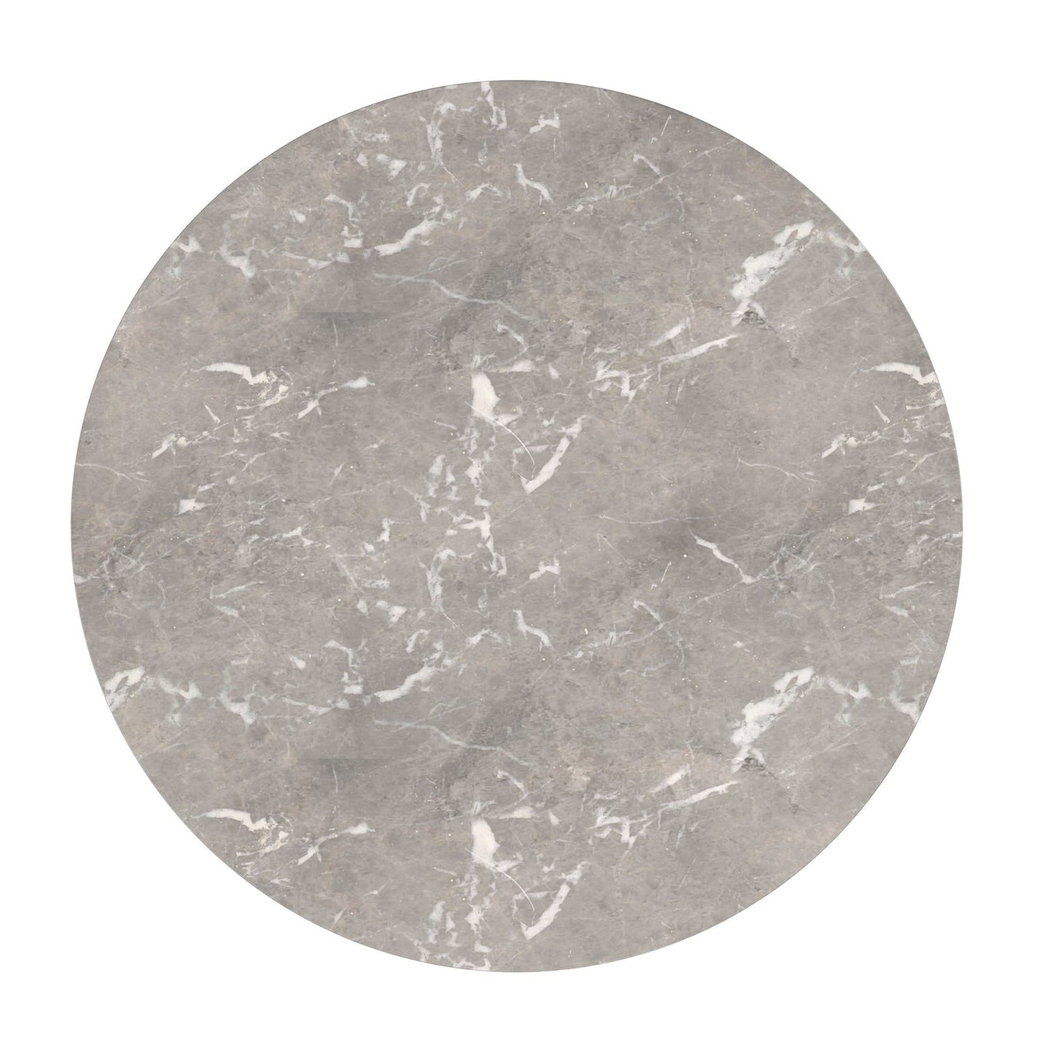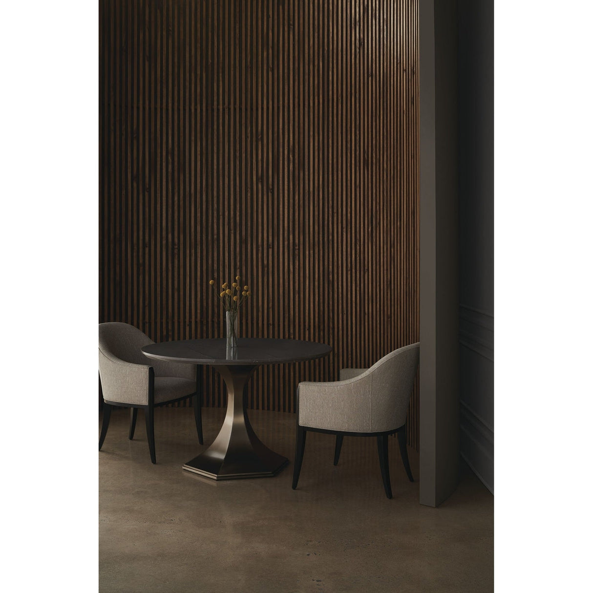 - Features a luxurious, yet durable, grey sintered stone top with the classic look of veined marble, perfectly poised on a cinched fluted base in a Brushed Antique Brass finish.