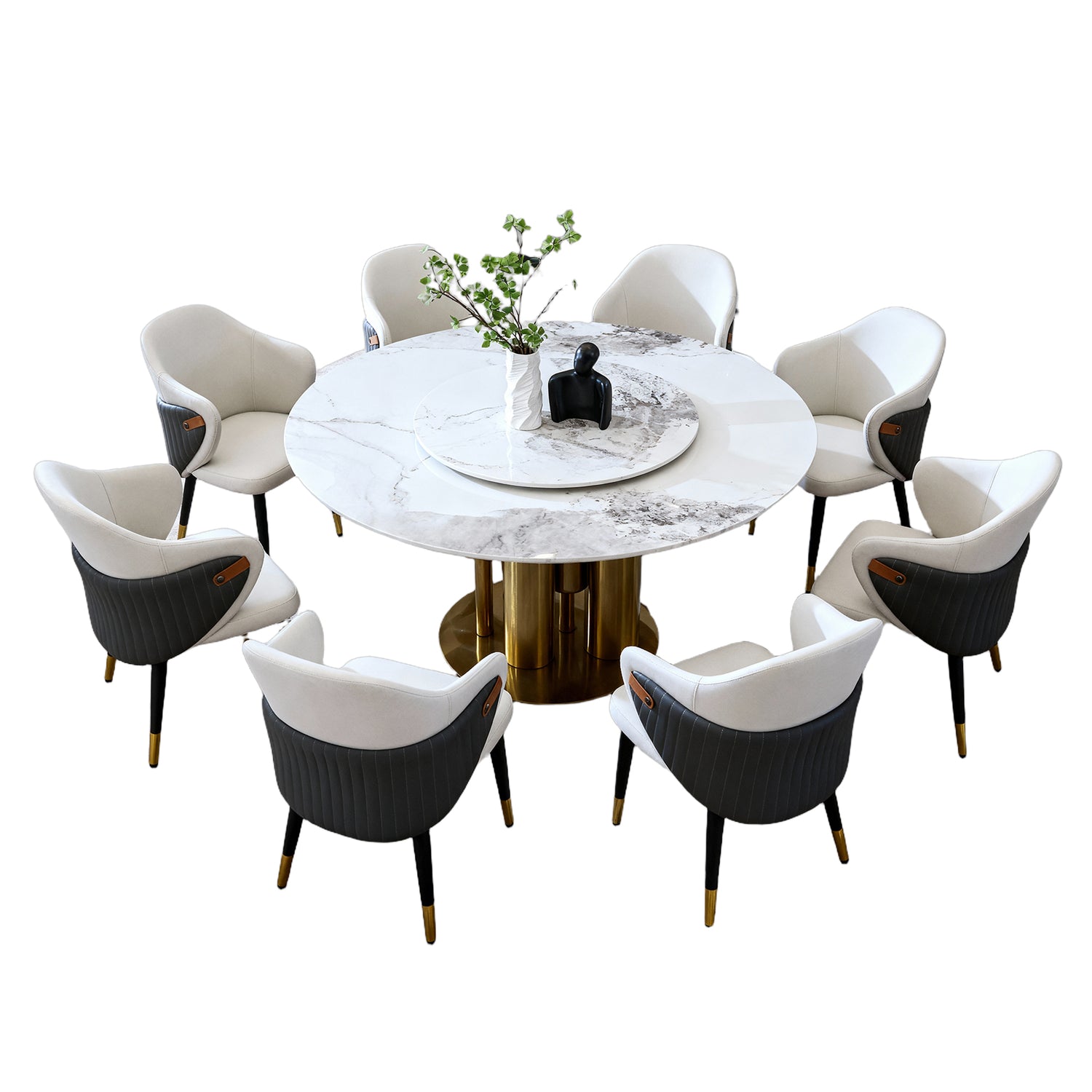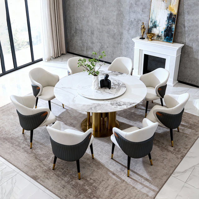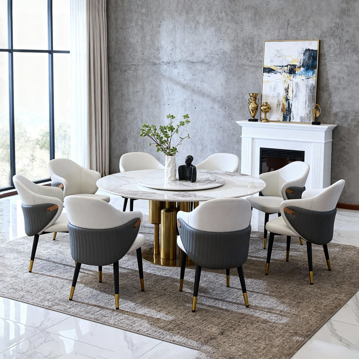 59' Round Dining Table with 360° Smooth Lazy Susan, Stain & Heat Resistant Sintered Stone Tabletop, Modern Minimalist Design for Kitchen, Dining Room, Compact Spaces(8 chairs) is available