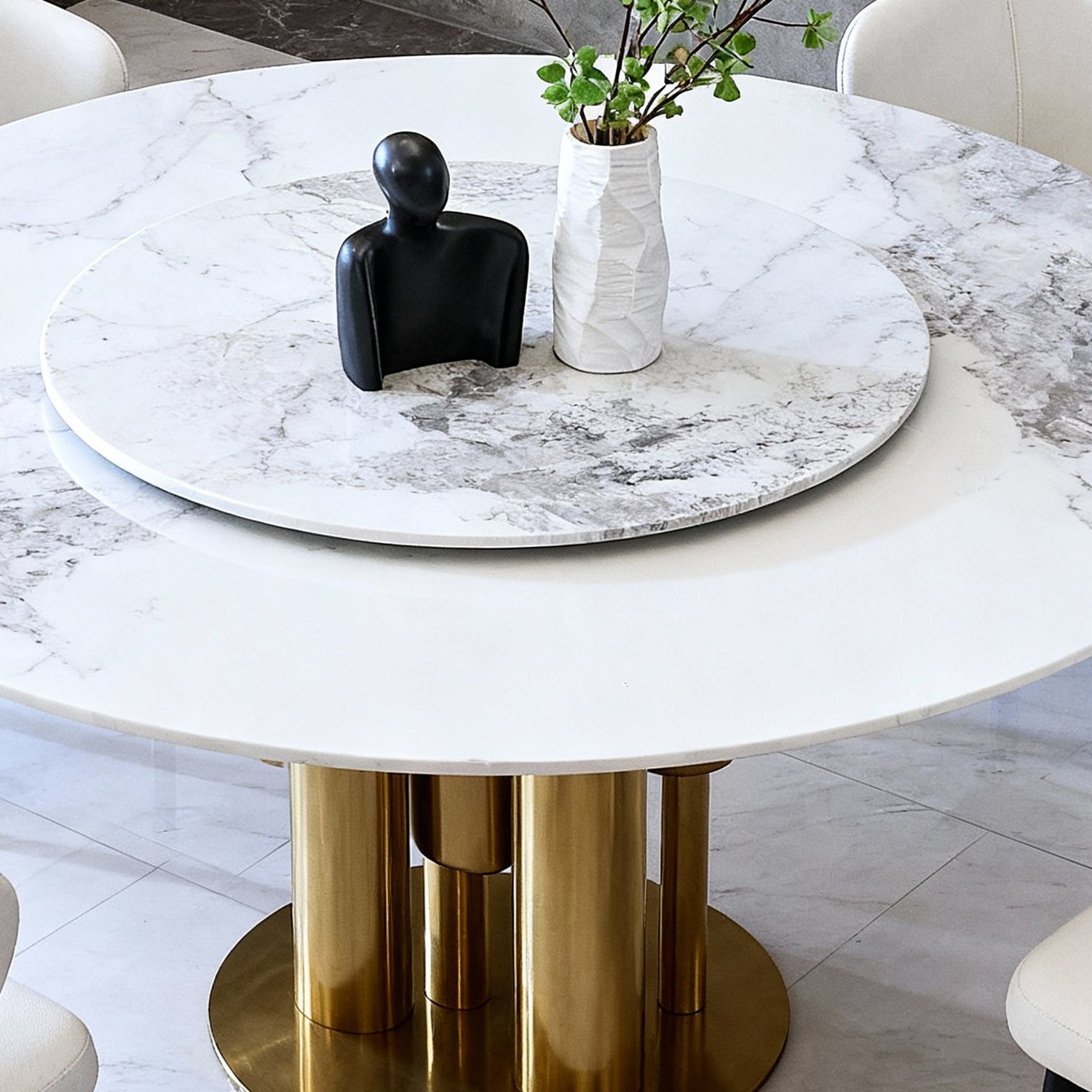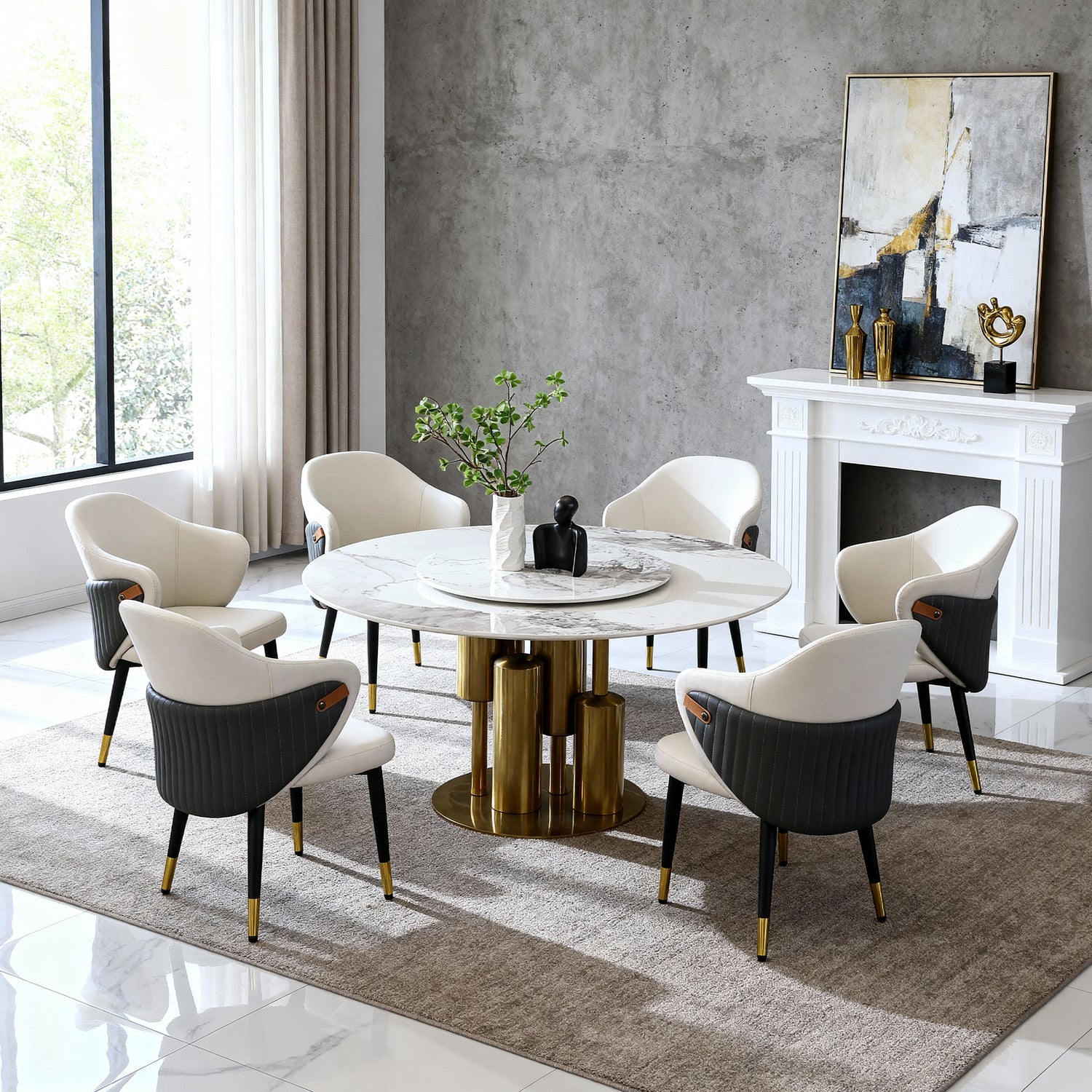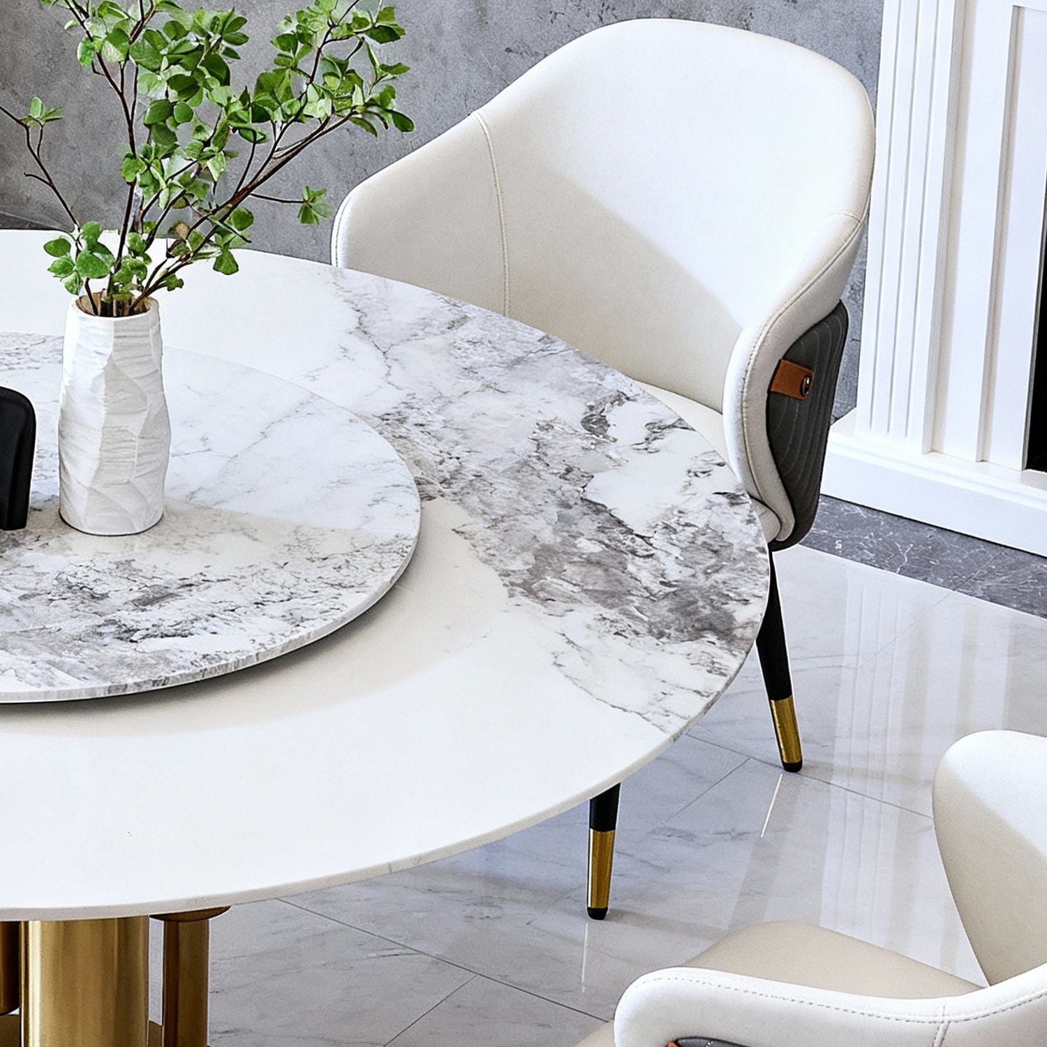 59' Round Dining Table with 360° Smooth Lazy Susan, Stain & Heat Resistant Sintered Stone Tabletop, Modern Minimalist Design for Kitchen, Dining Room, Compact Spaces(8 chairs) is available