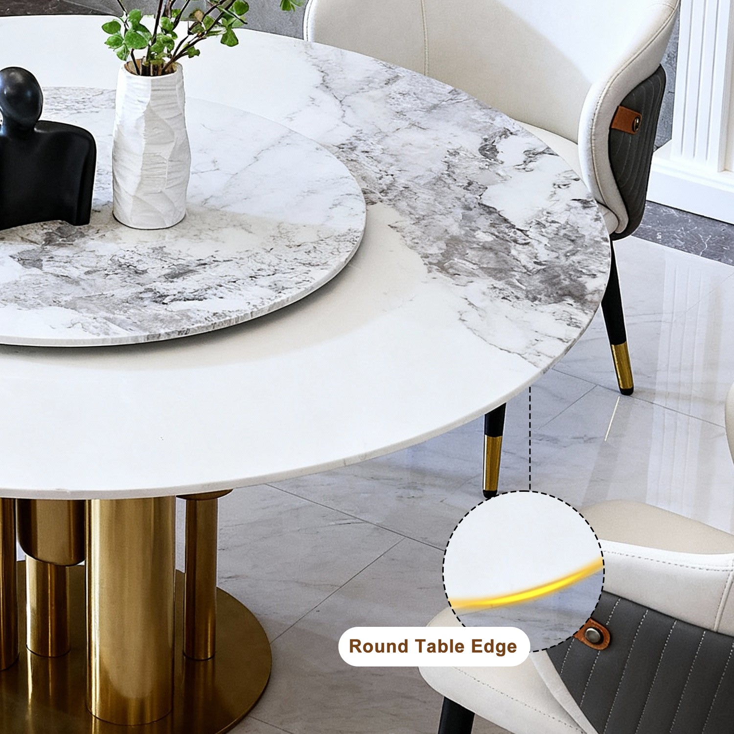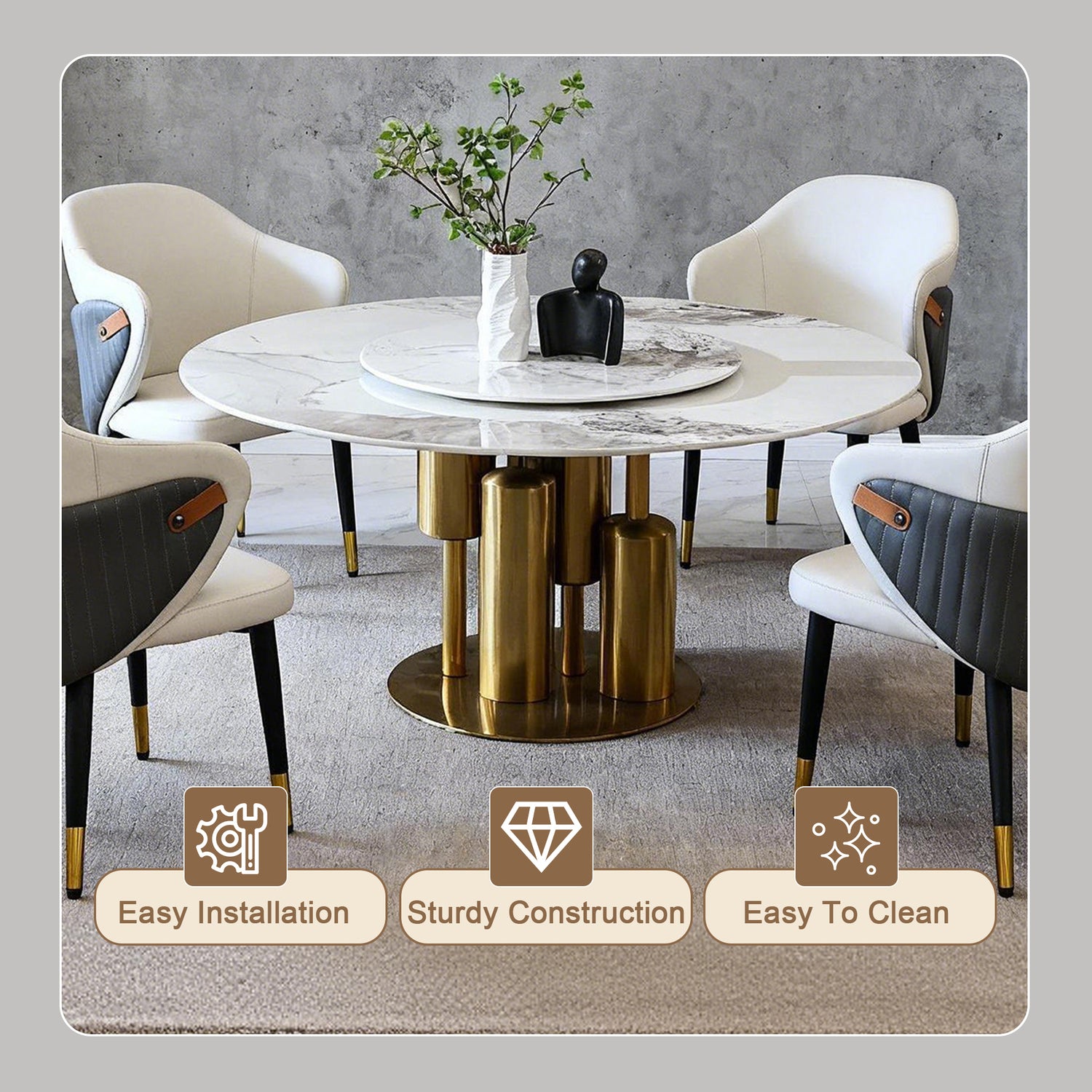 59' Round Dining Table with 360° Smooth Lazy Susan, Stain & Heat Resistant Sintered Stone Tabletop, Modern Minimalist Design for Kitchen, Dining Room, Compact Spaces(8 chairs)
