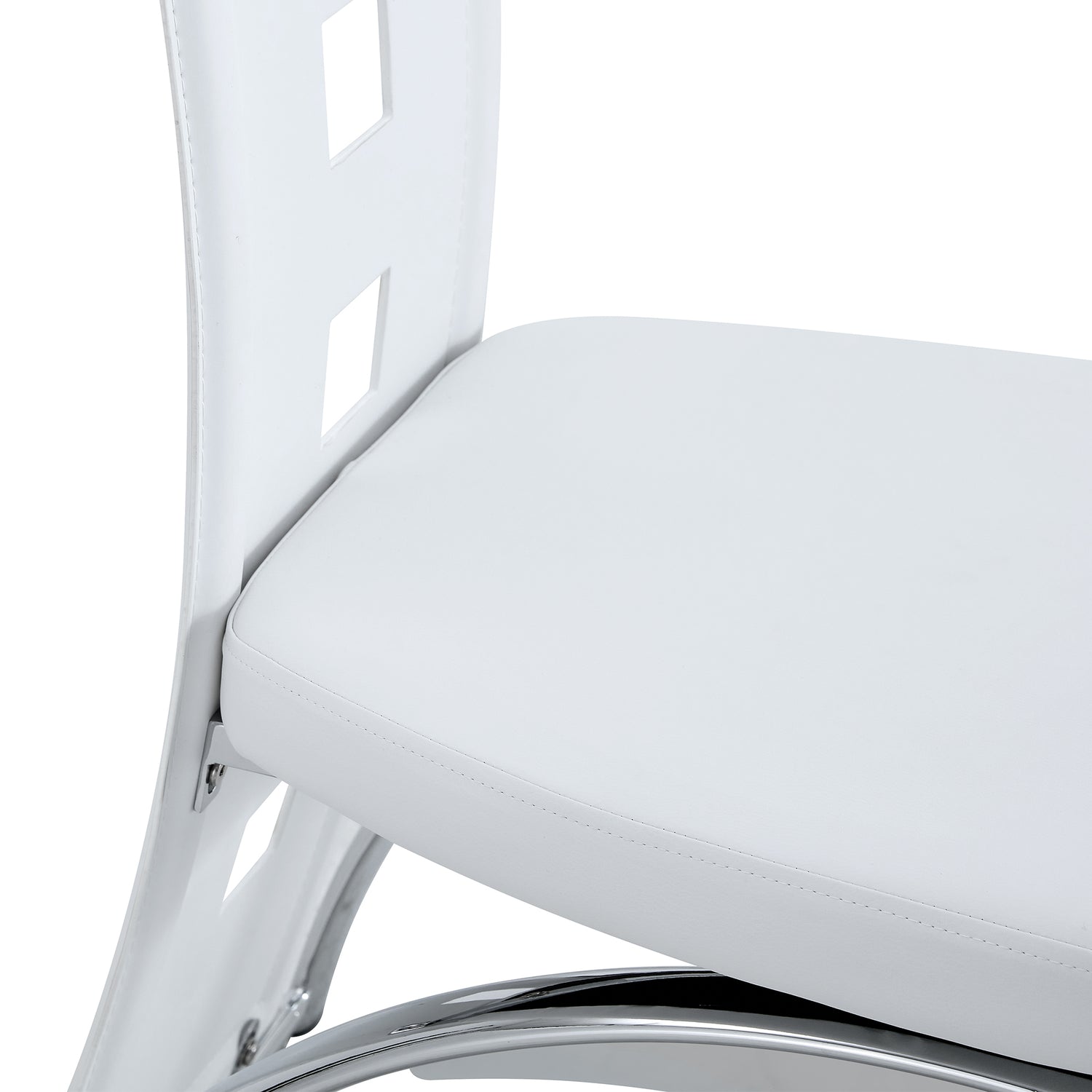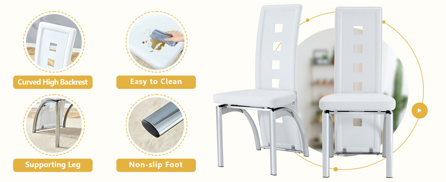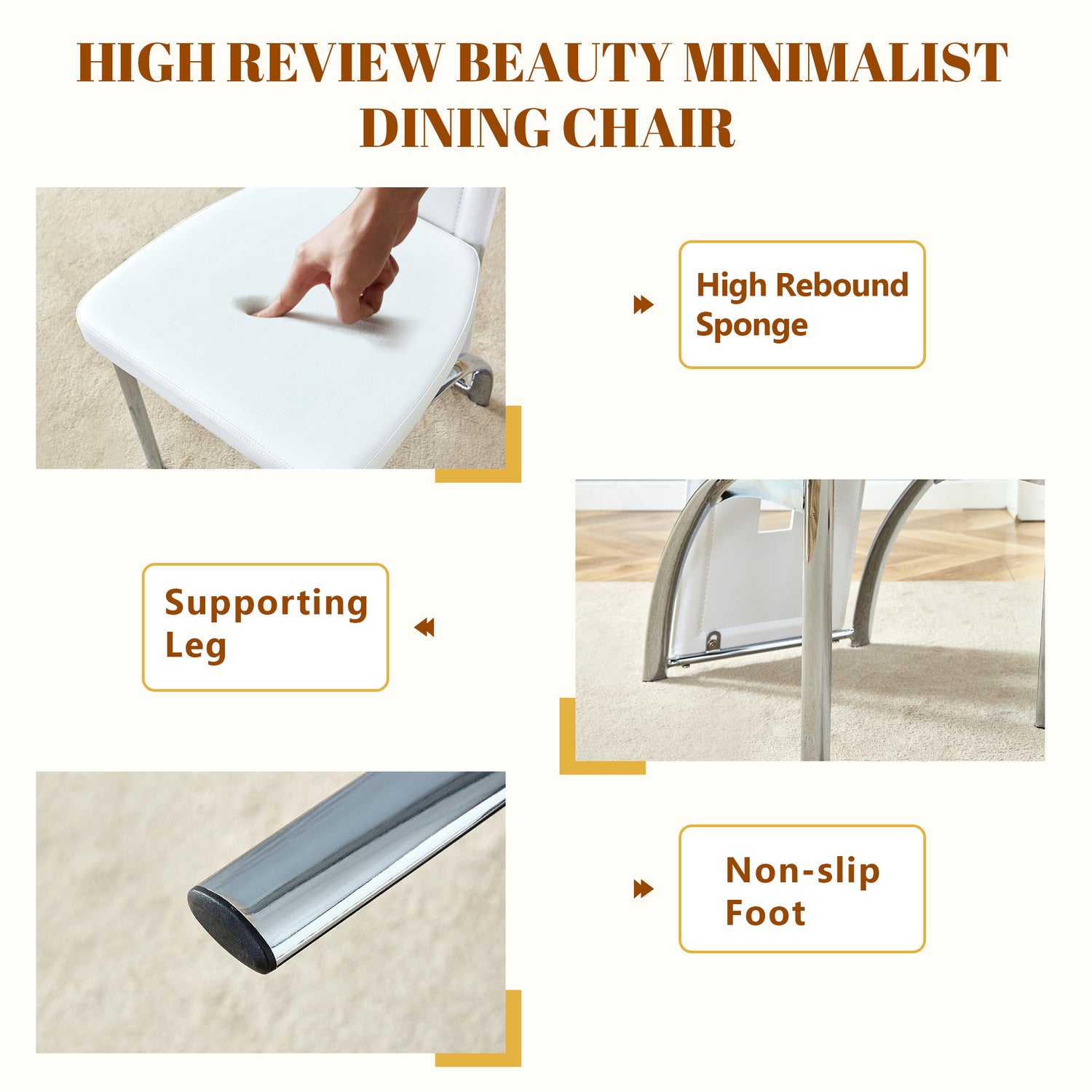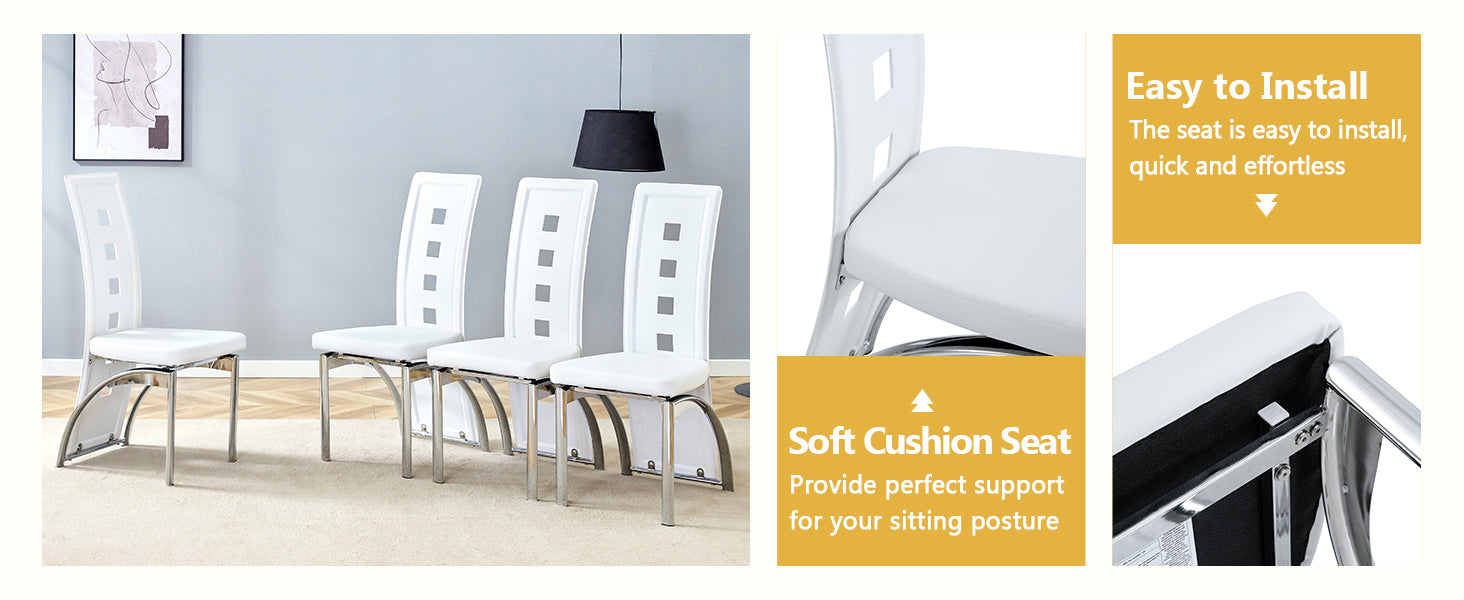 - Unique Design: The dining chairs feature a white saddleback material on the backrest, extending all the way down, complemented by a geometric square pattern that showcases a modern minimalist style.Modern Aesthetics: The modern design and geometric pattern of the dining chairs add a touch of fashion and artistry to your home.