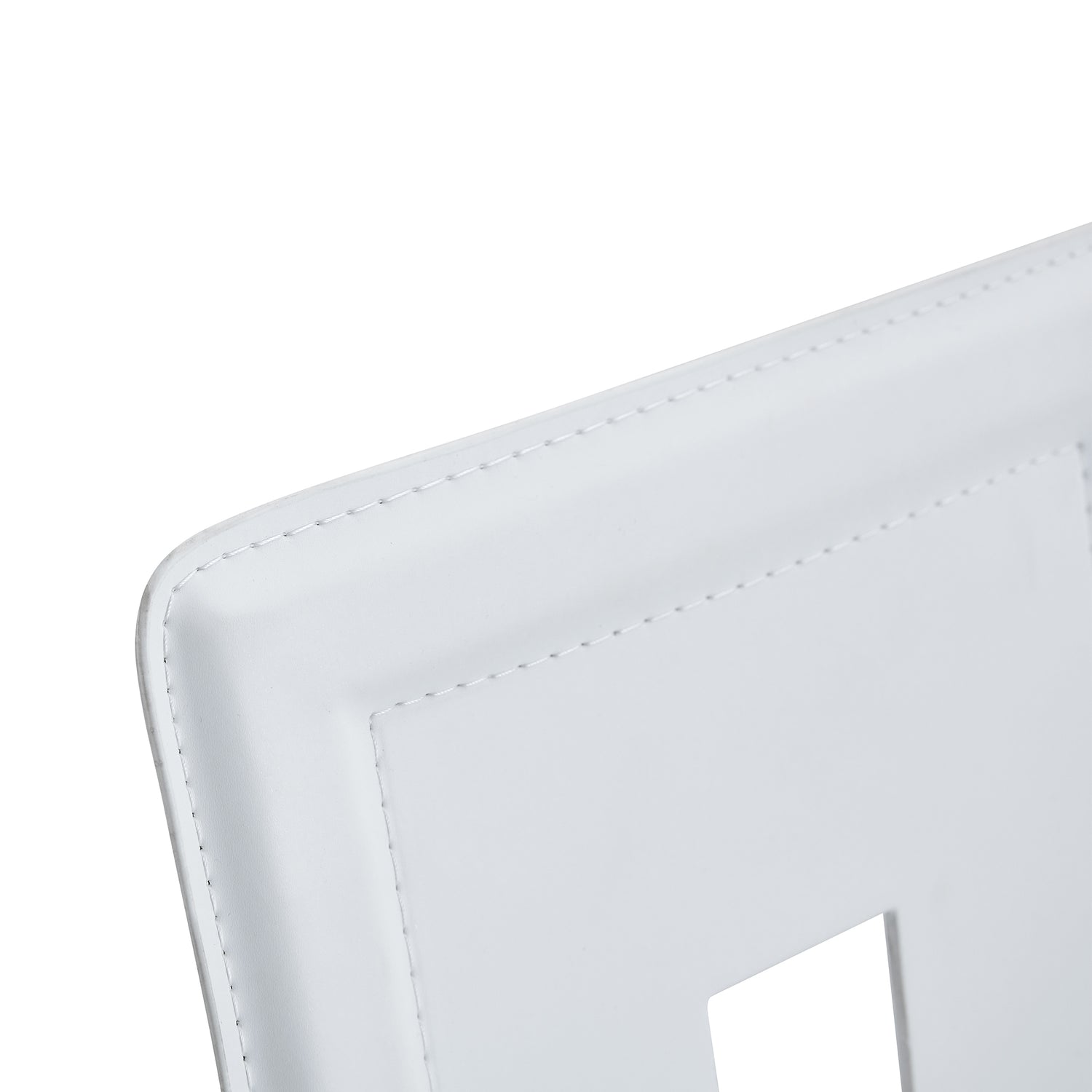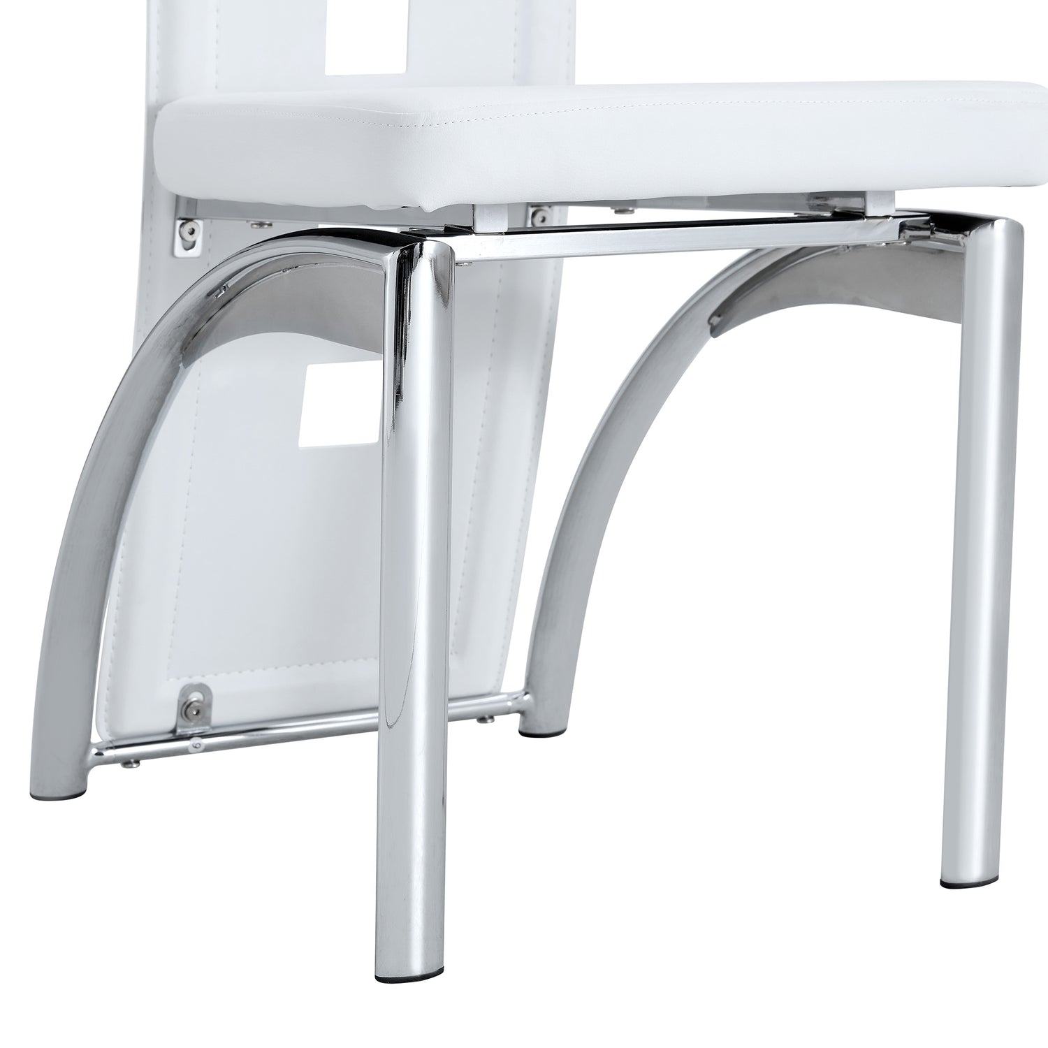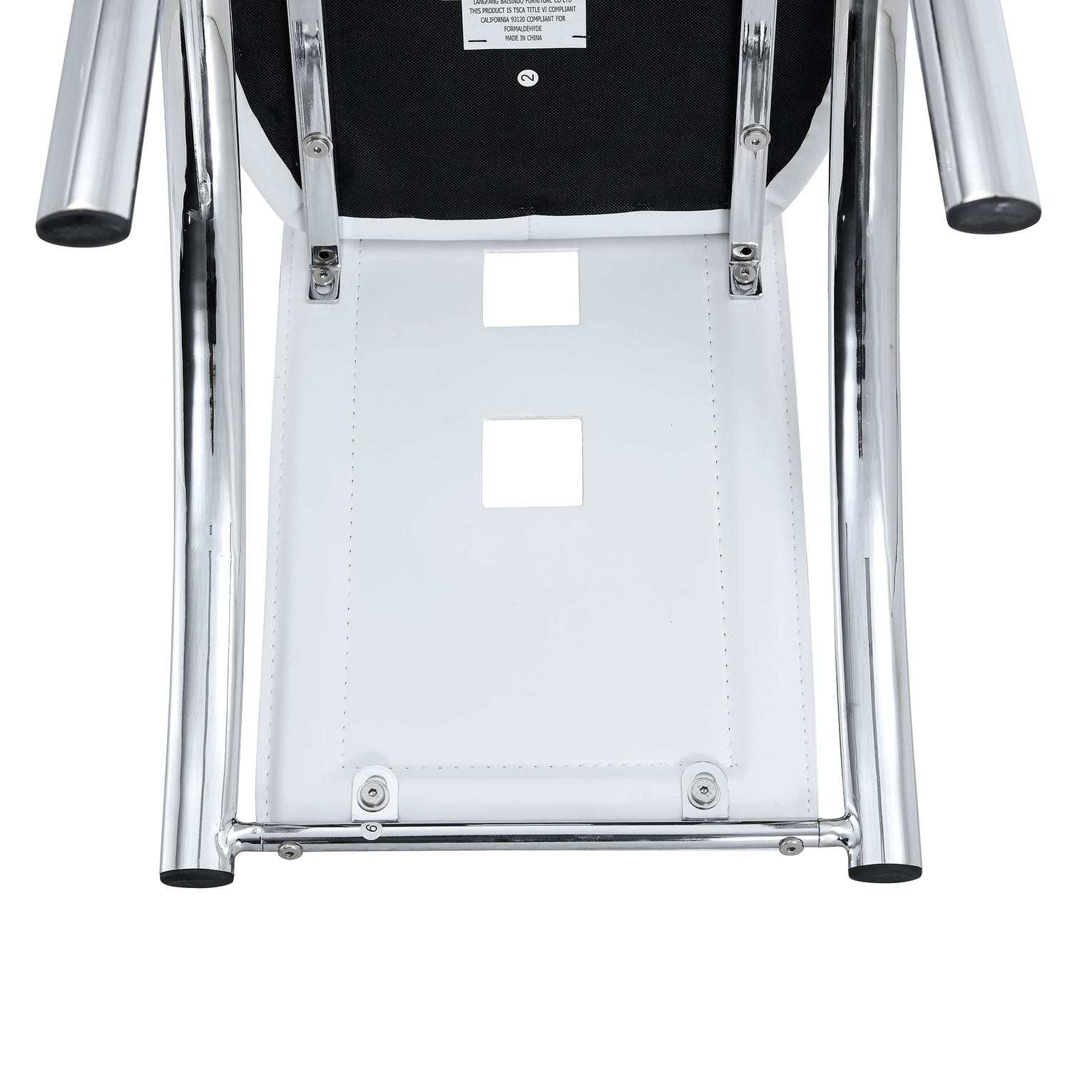 - Unique Design: The dining chairs feature a white saddleback material on the backrest, extending all the way down, complemented by a geometric square pattern that showcases a modern minimalist style.Modern Aesthetics: The modern design and geometric pattern of the dining chairs add a touch of fashion and artistry to your home.