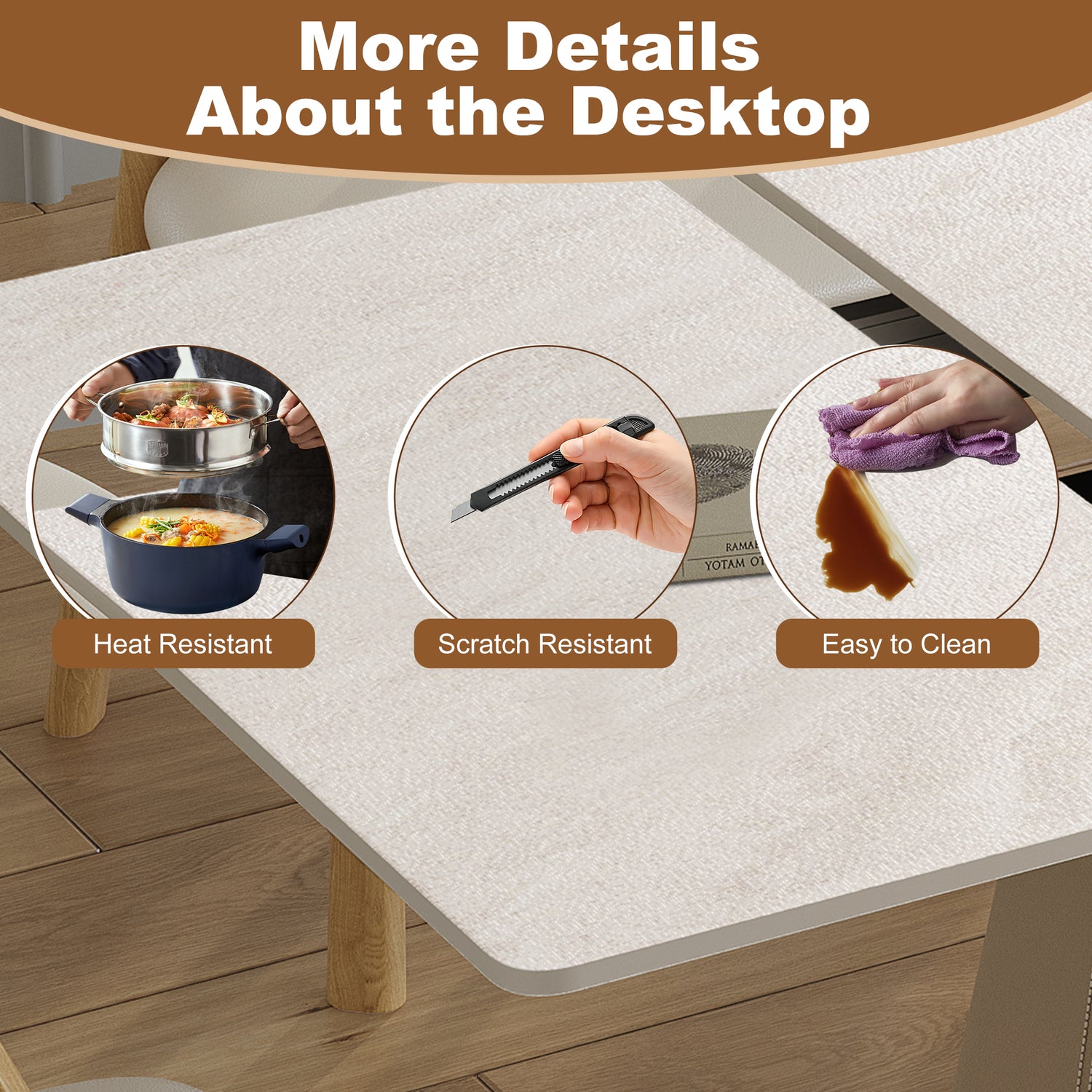 • Premium Retractable Rock Slab Table with Modern Functionality:This innovative dining table features a durable rock slab surface and smooth retractable mechanism that effortlessly adjusts to accommodate varying needs. The combination of industrial-grade materials and intelligent design creates a centerpiece that balances aesthetics with practical daily use.