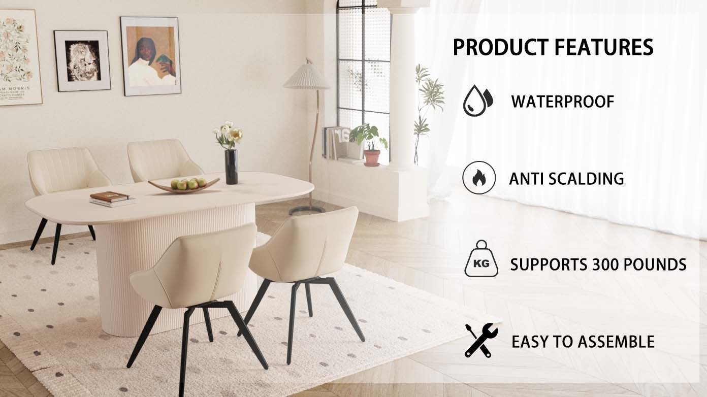 - 8.5 sets of tables and chairs: a table that can accommodate 4-8 guests for gatherings and 4 ergonomic artificial leather modern luxury style dining chairs, creating a fashionable focus for you in the dining area.