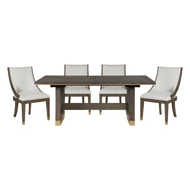 Modern Brown Finish 5pc Dining Set Extension Dining Table and 4x Armchairs Set Gold Tipping Upholstered Dining Kitchen Furniture