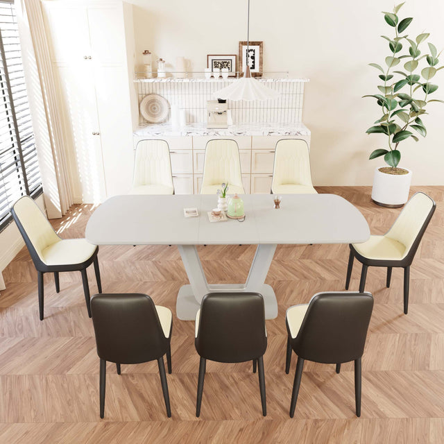 62.99-78.74' expandable dining table set for 2-8 people, equipped with 8 PU fabric thick padded dining chairs and an spacious dining table, kitchen table and chairs, with U-shaped table legs