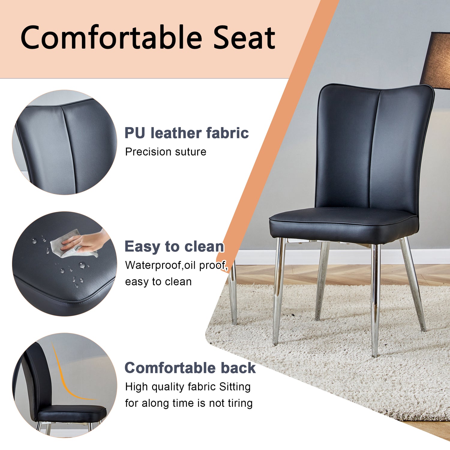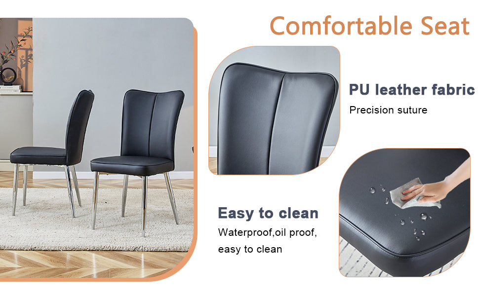 - PU Material for Comfort: The chairs are made of PU material, with a vertical line design on the backrest that adds aesthetic detail while offering a soft and comfortable seating experience.