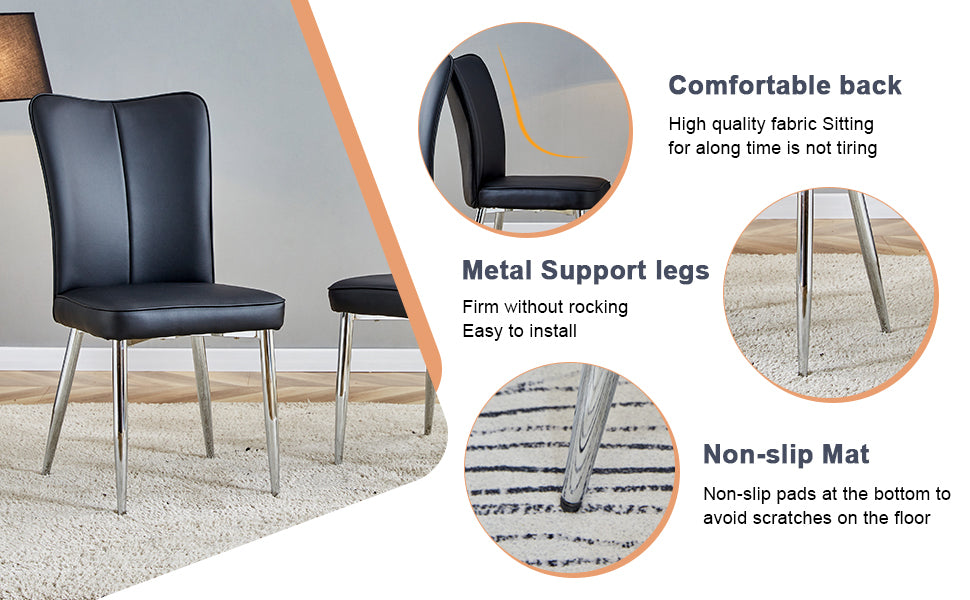 - Silver Metal Chair Legs: The silver metal legs of the chairs echo the black color, creating a coordinated and unified look that showcases the refinement and fashion of modern home furnishings.