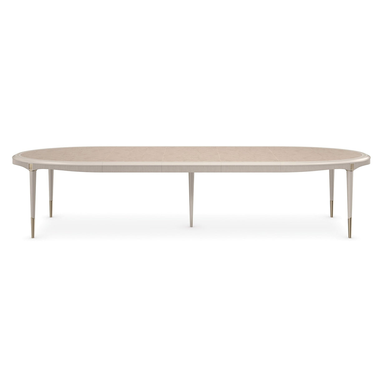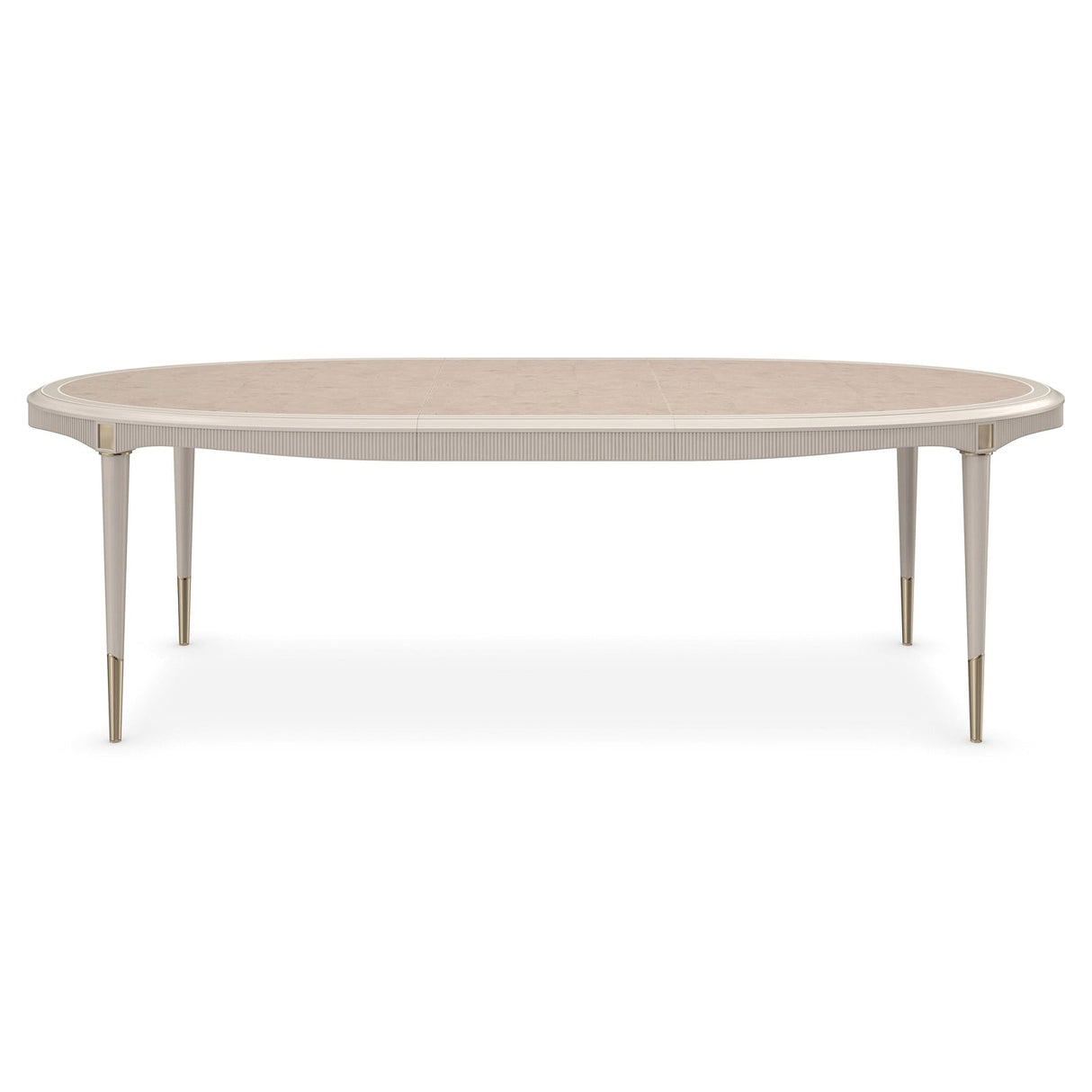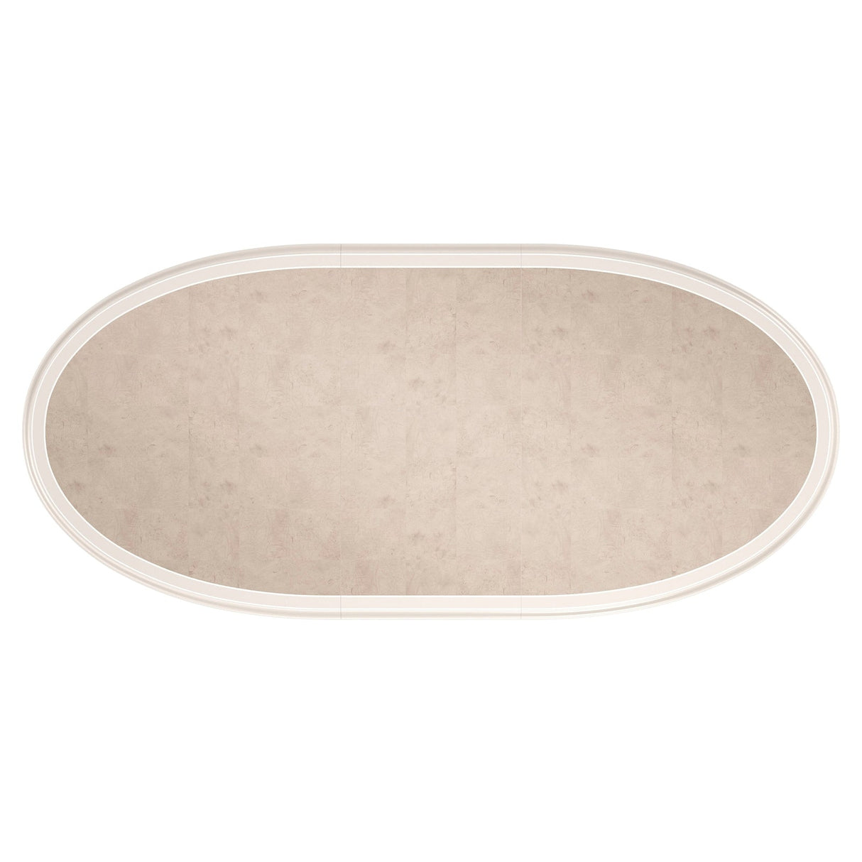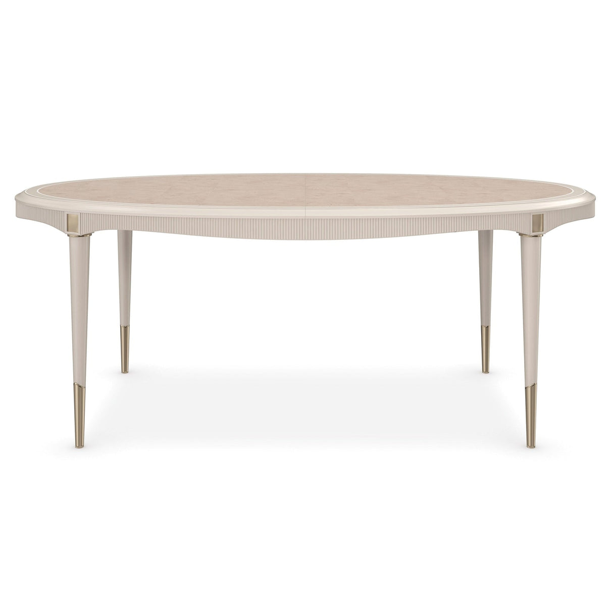 - Each leg on this oval table is caped with a Whisper of Gold ferrule that replays the flowing shape of the apron.
