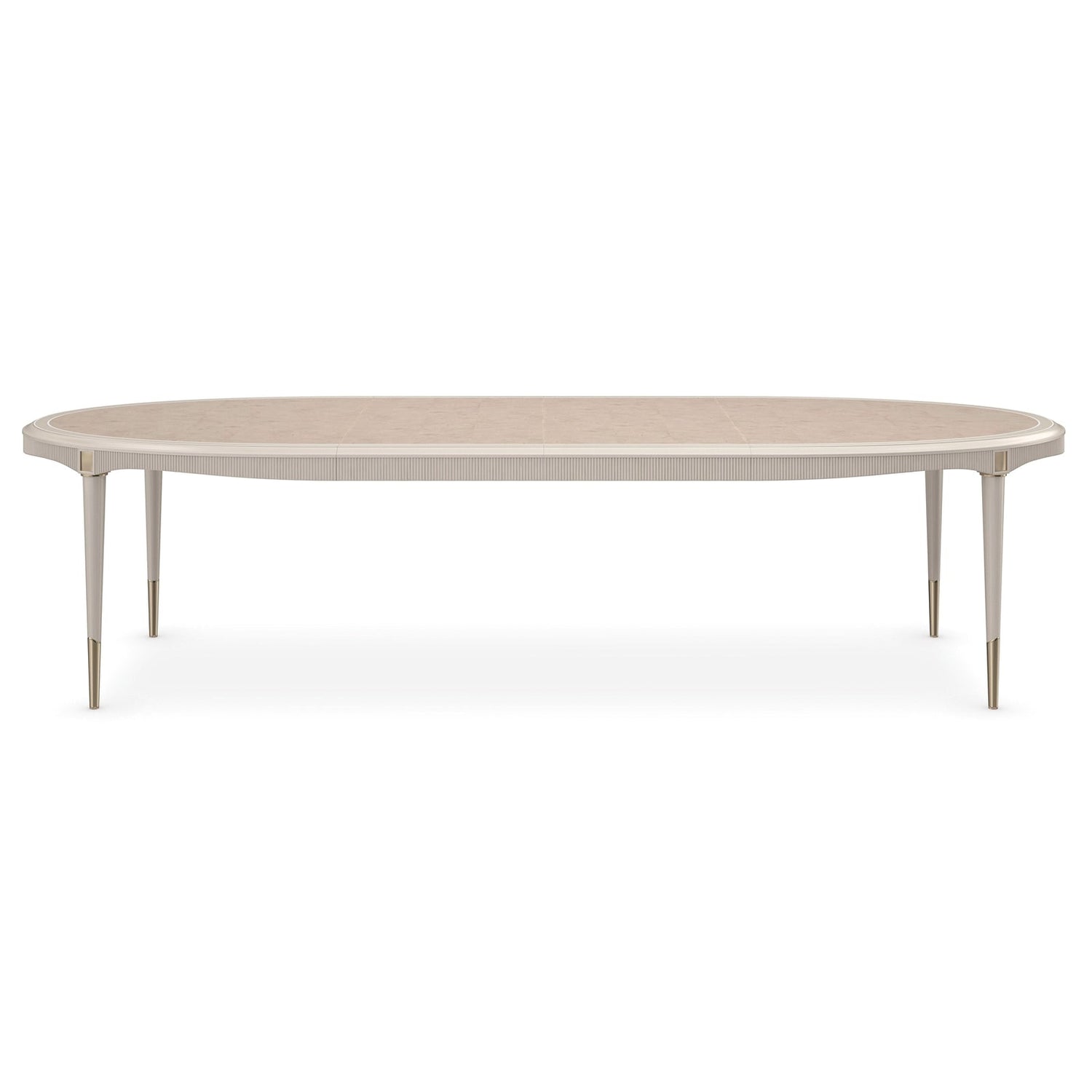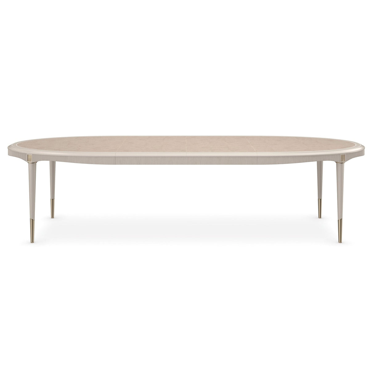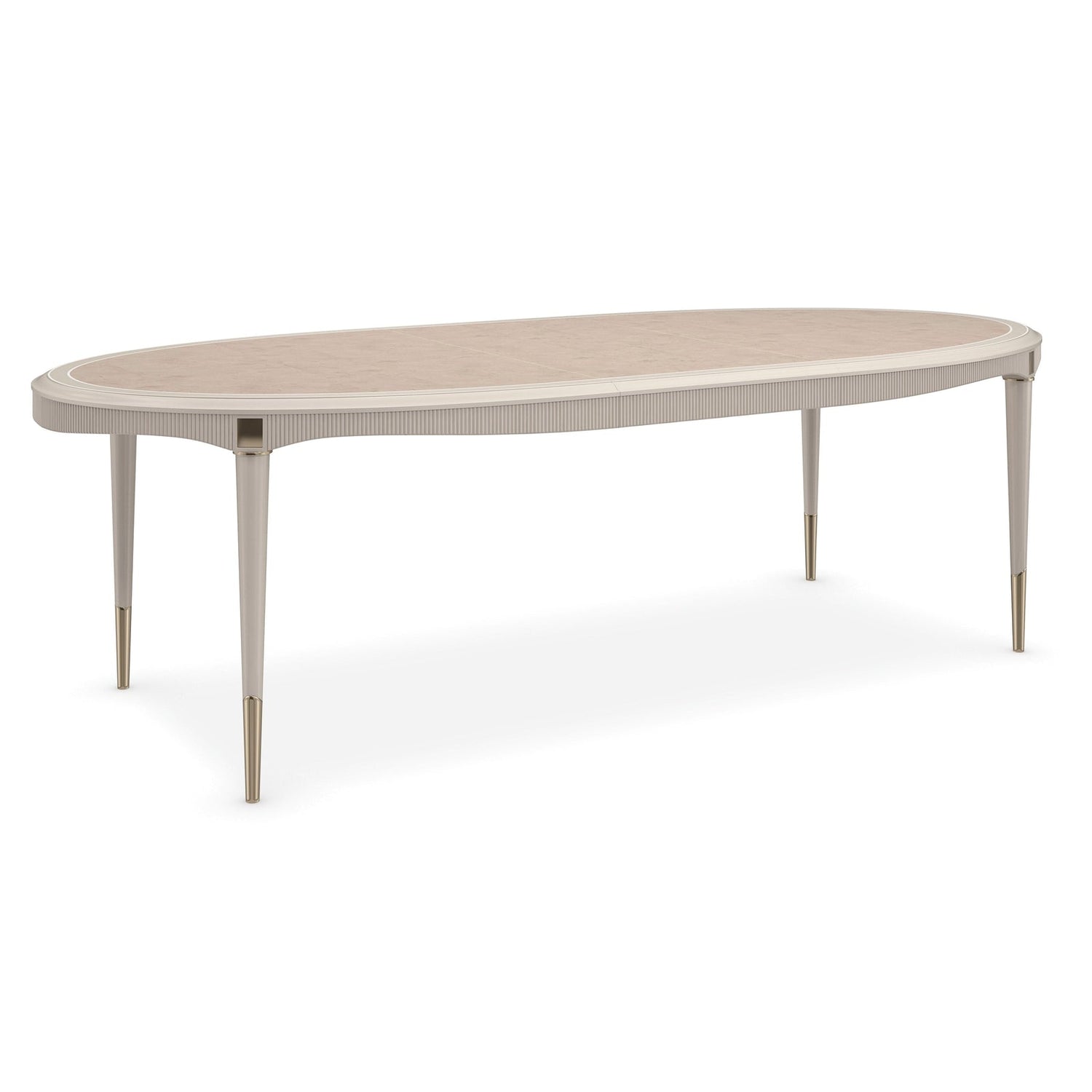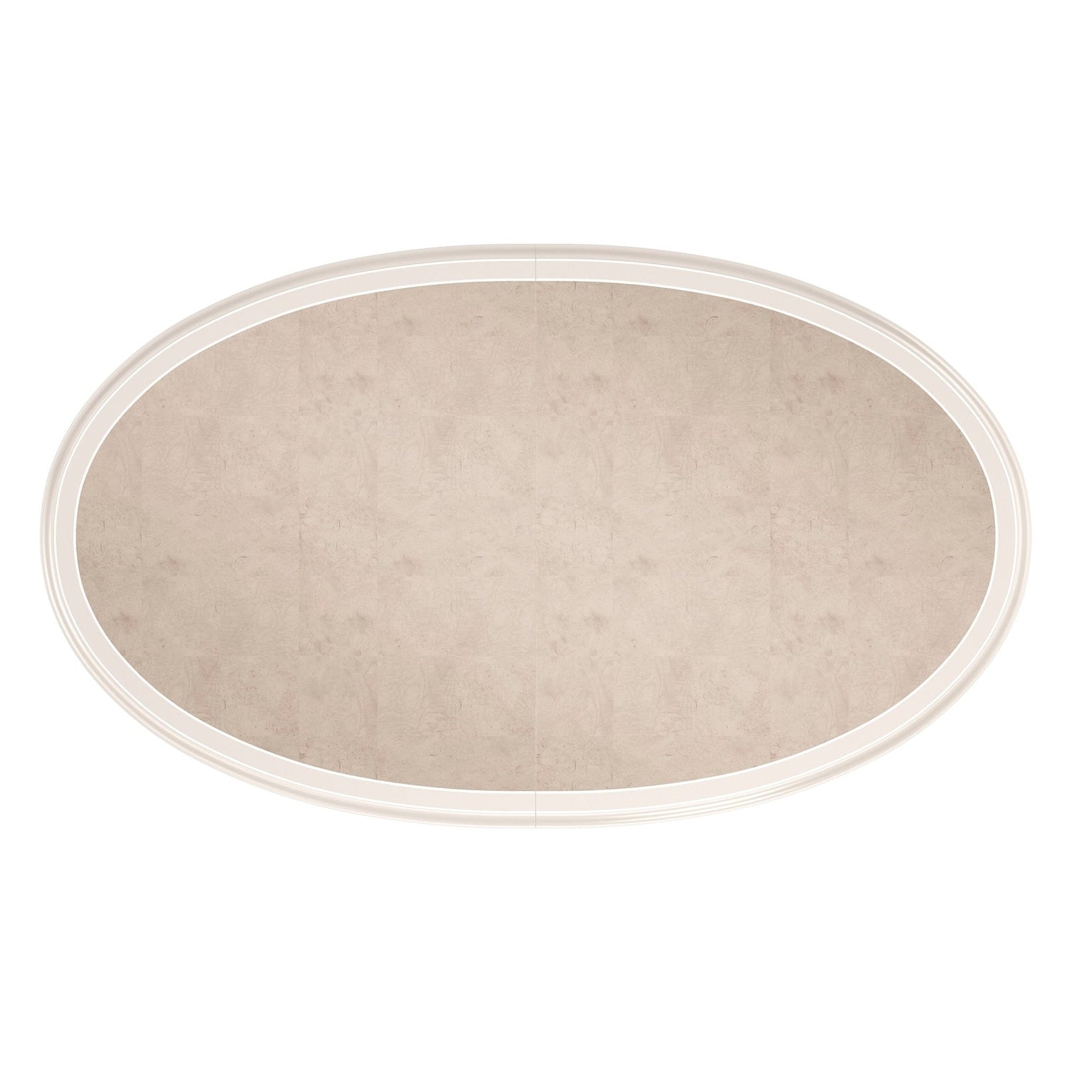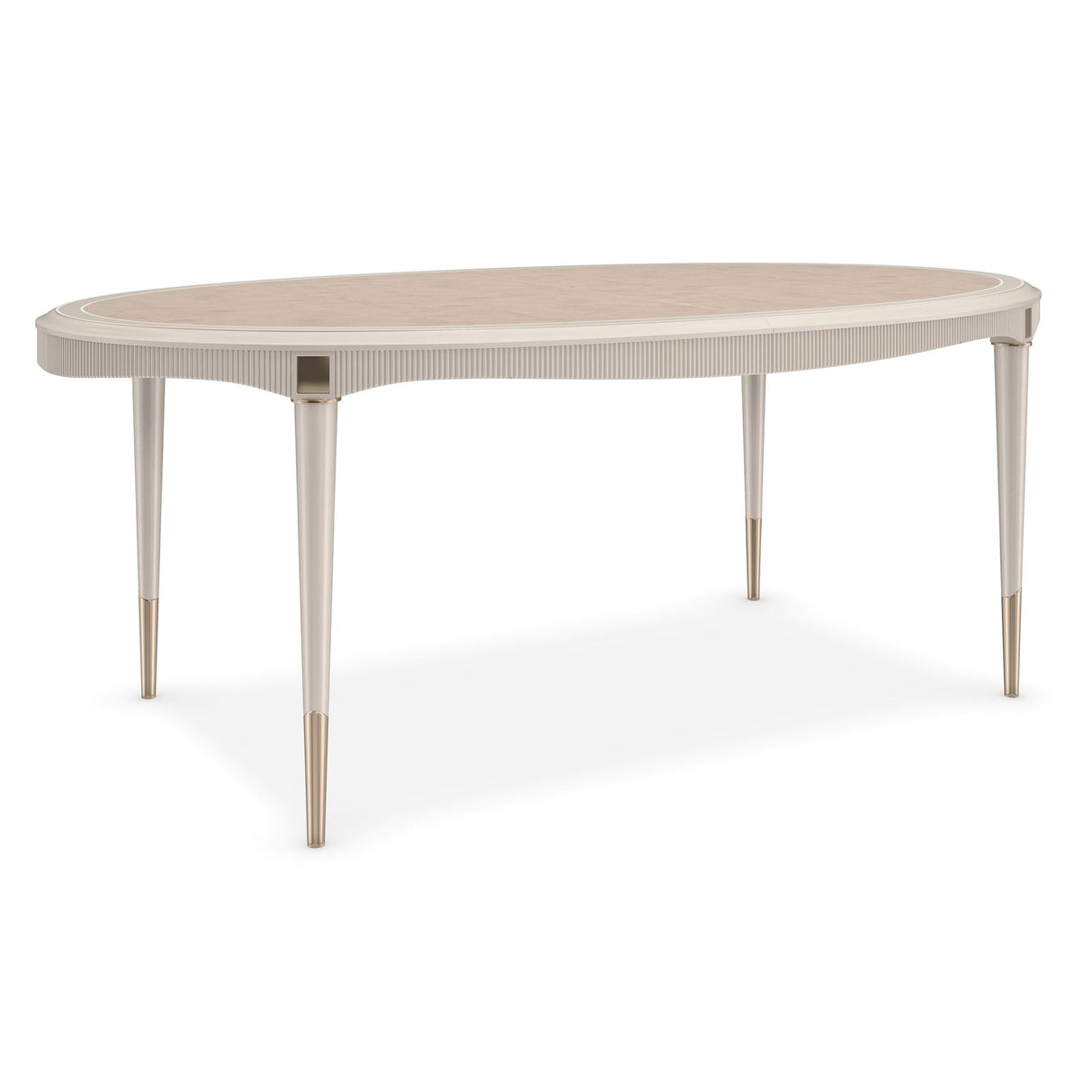 - Each leg on this oval table is caped with a Whisper of Gold ferrule that replays the flowing shape of the apron.