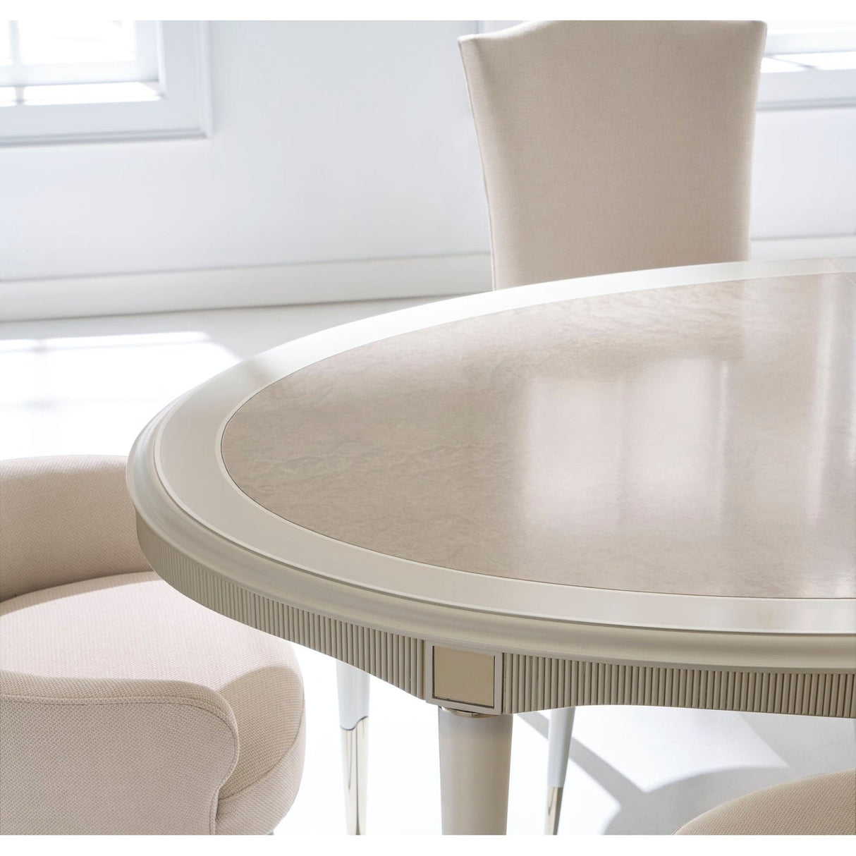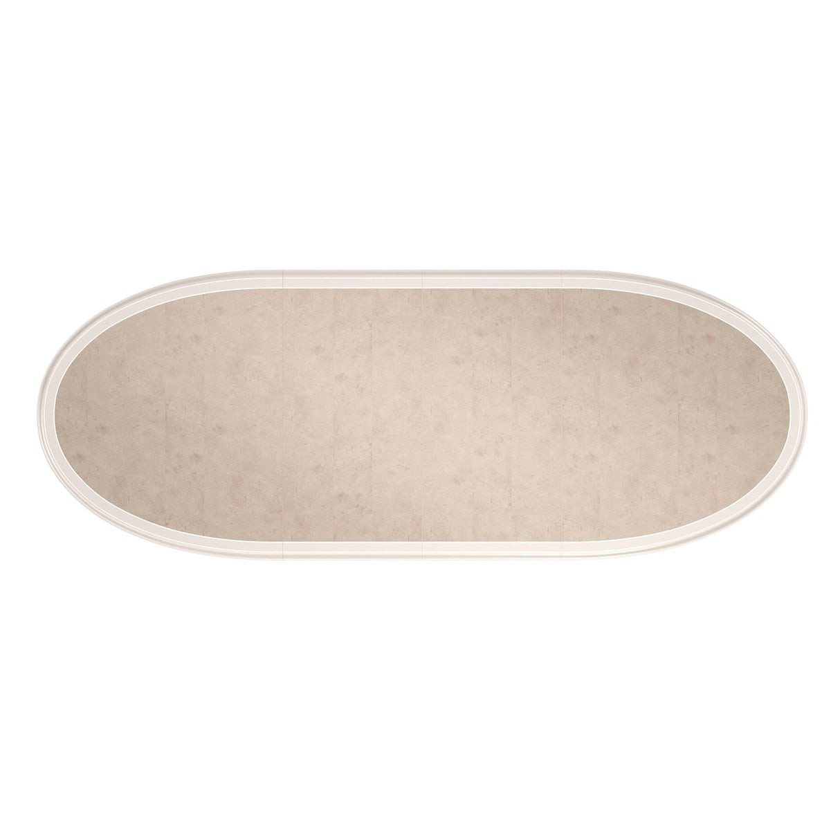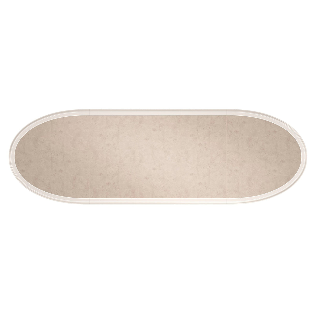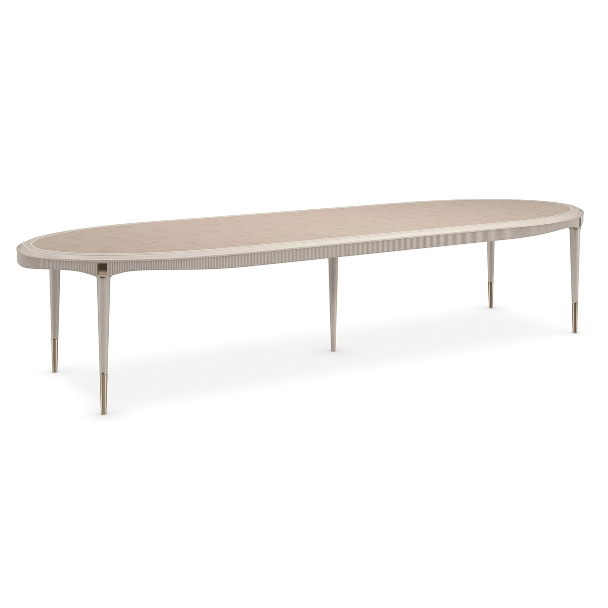 - Each leg on this oval table is caped with a Whisper of Gold ferrule that replays the flowing shape of the apron.