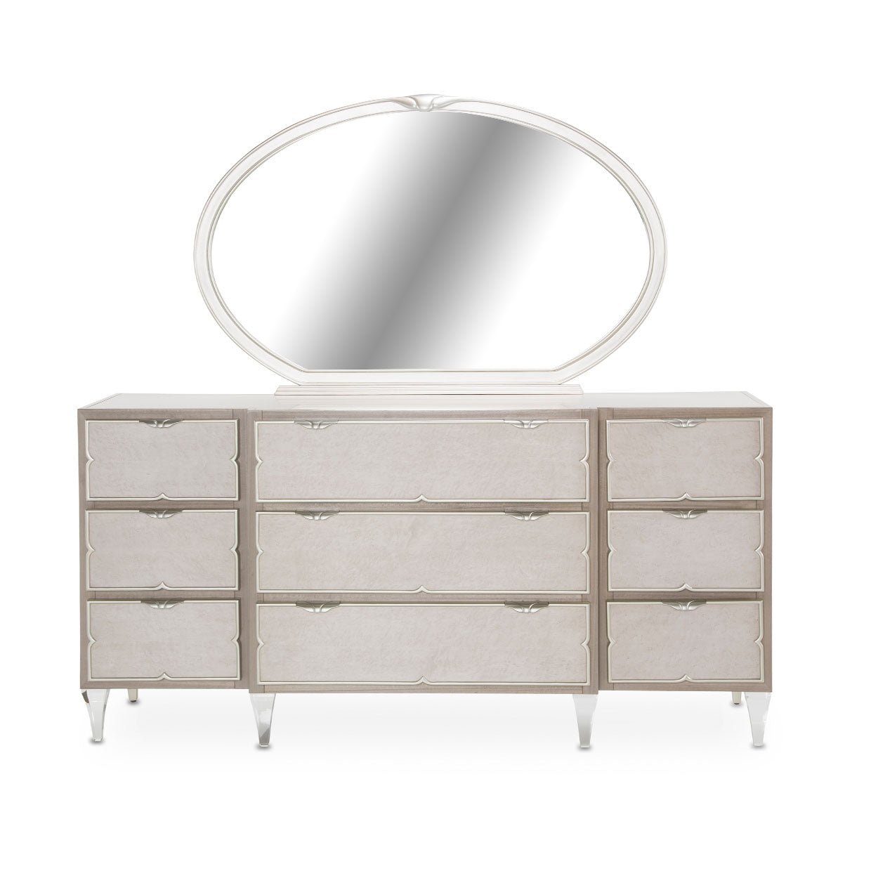 Camden Court Dresser with Oval Mirror Pearl Finish – AICO