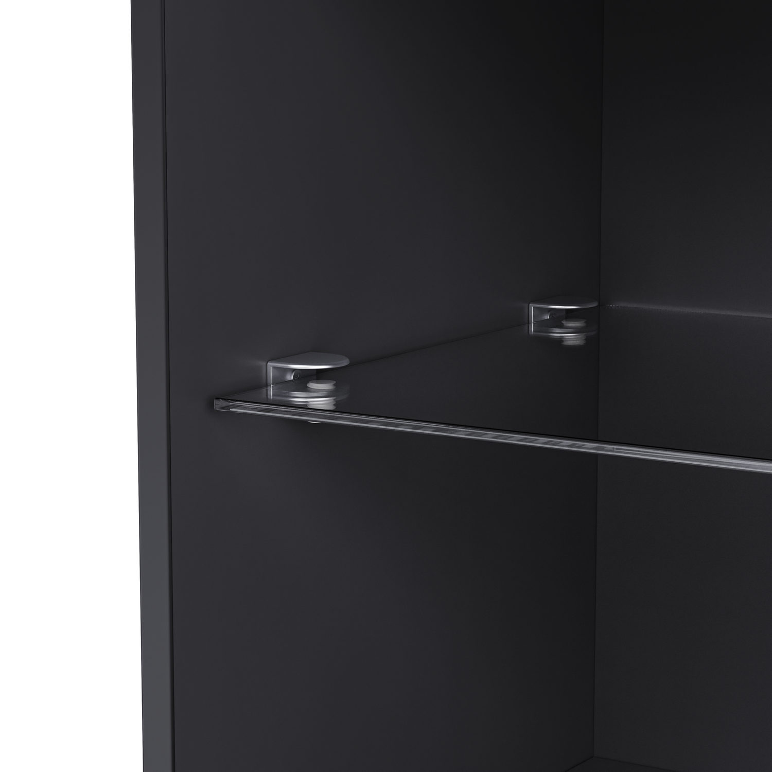 The high gloss surface design of the cabinet doors adds a touch of technology and modernity to your home, while also being waterproof and easy to clean. The acrylic door and tempered glass shelves ensure that your collection is displayed in a clear and accessible manner. It can accommodate TVs up t