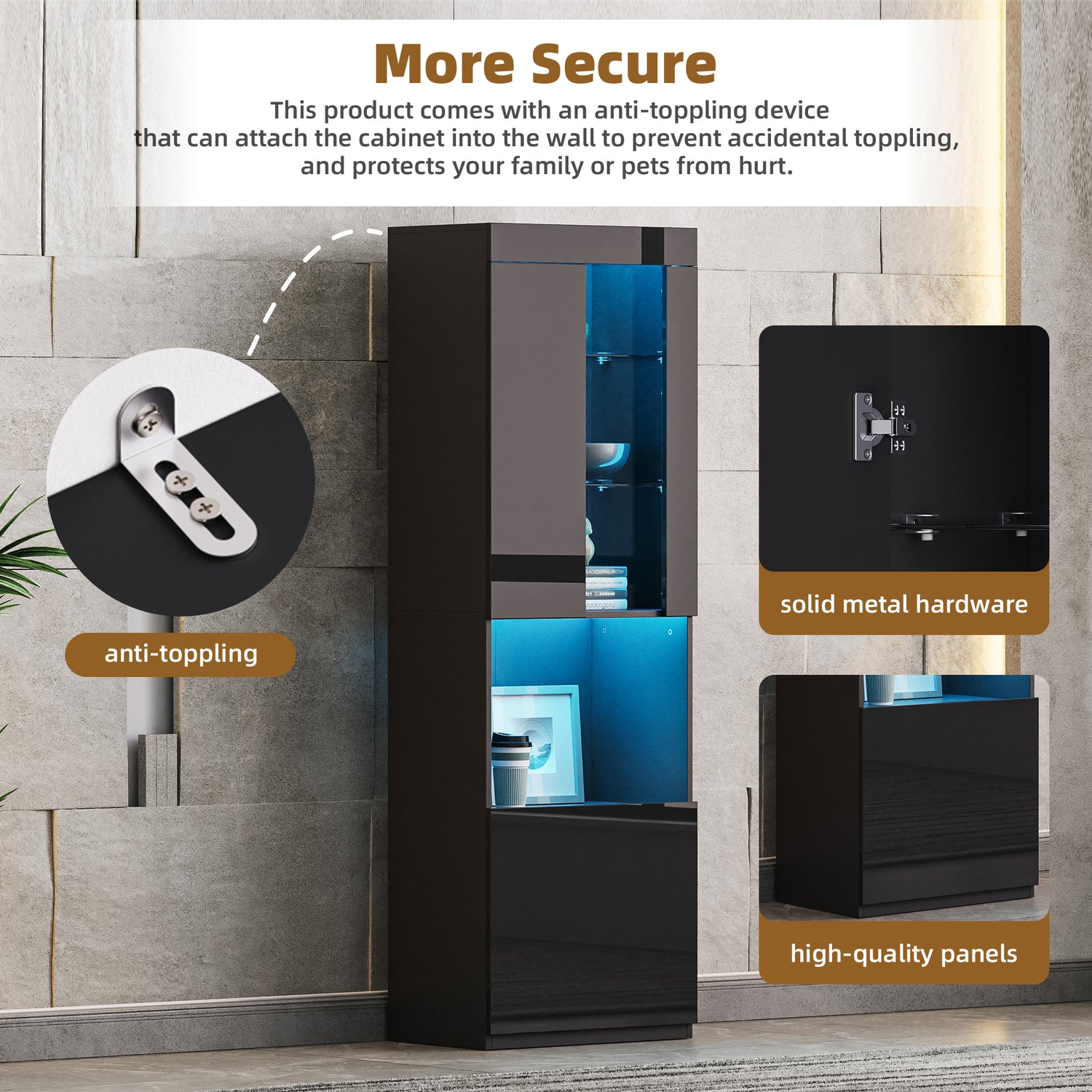 • The high gloss surface design of the cabinet doors adds a touch of technology and modernity to your home, while also being waterproof and easy to clean. The acrylic door and tempered glass shelves ensure that your collection is displayed in a clear and accessible manner. It can accommodate TVs up to 75 inches.
