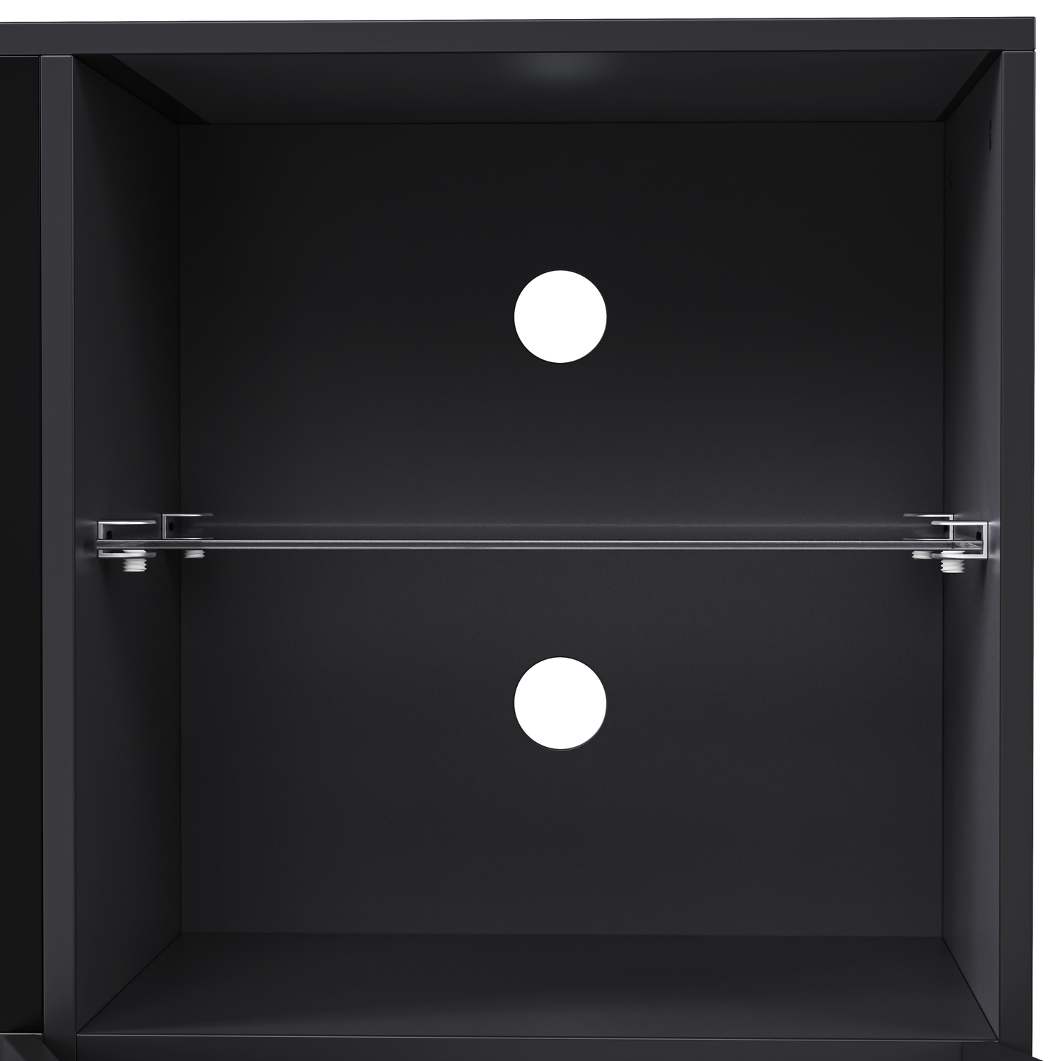 This TV cabinet features a LED light strip that connects via App on your phone. You can not only control the color and brightness of the LED lights but also set up all kinds of fancy flash mode, creating a warm atmosphere to your night. Also you can change the light of the LED strip according to the rhythm of the music, creating a vibrant party atmosphere.