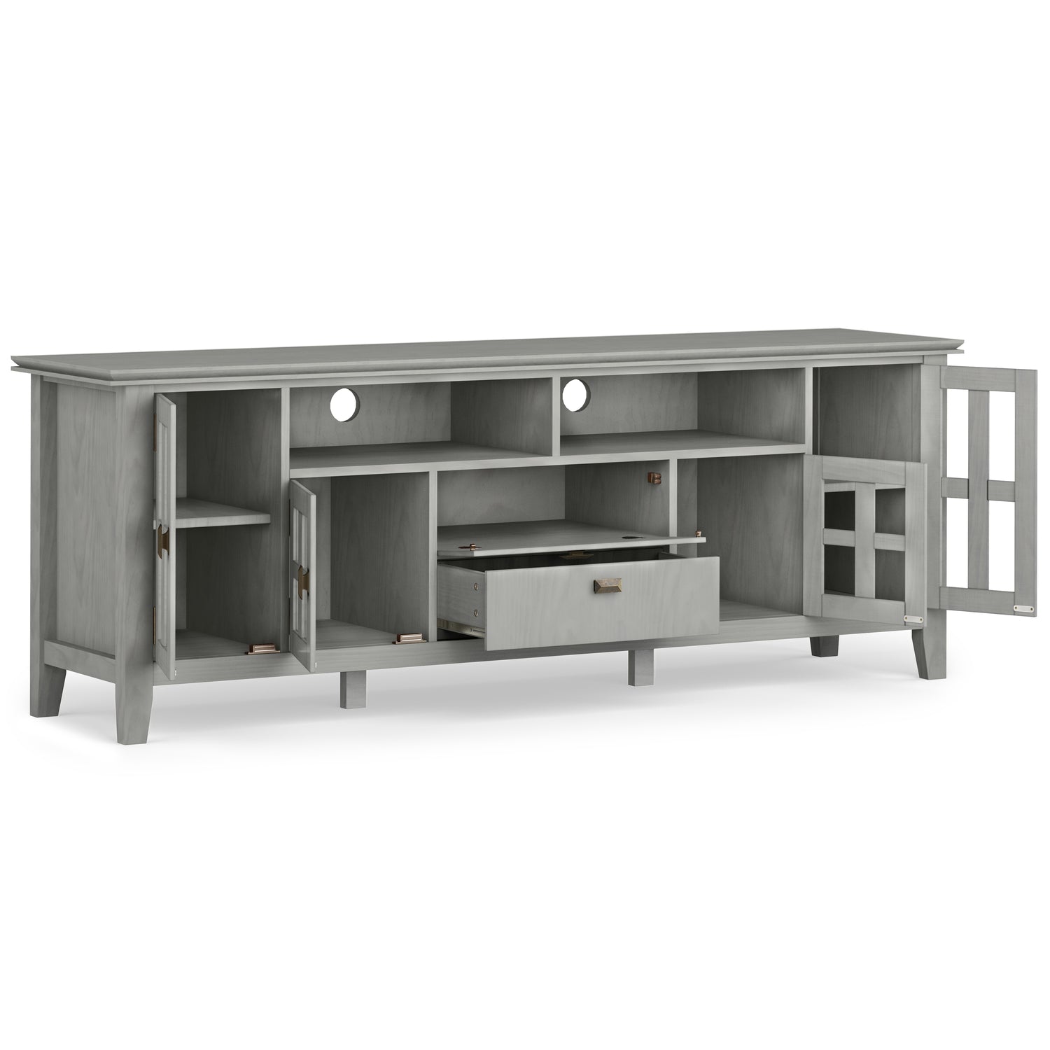 Artisan 72 inch Wide Solid Wood TV Stand in Fog Grey For TVs up to 80 inches