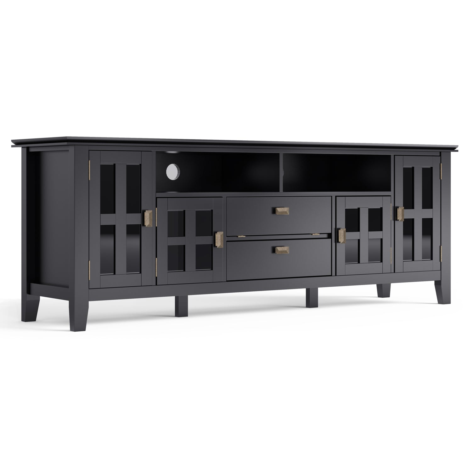 Artisan 72 inch Wide Solid Wood TV Stand in Black For TVs up to 80 inches