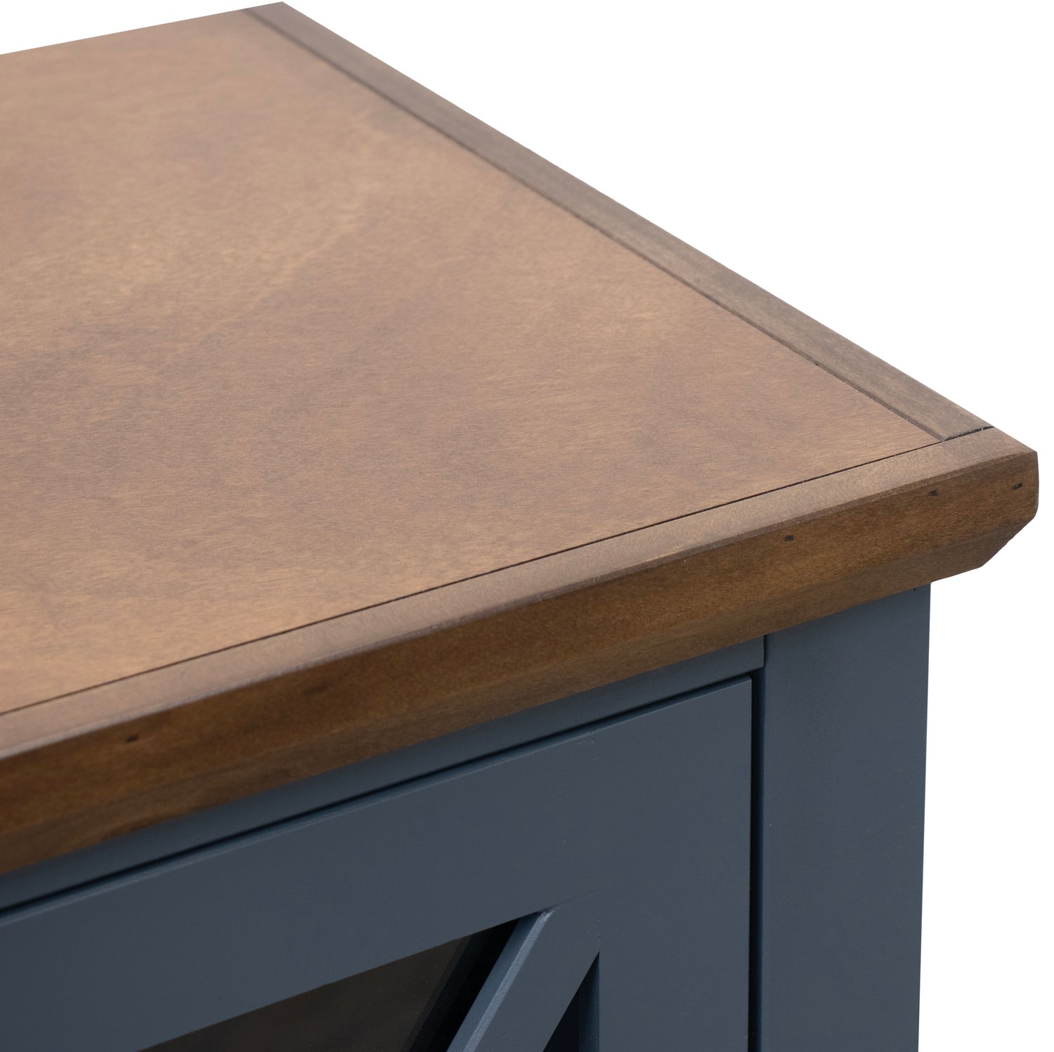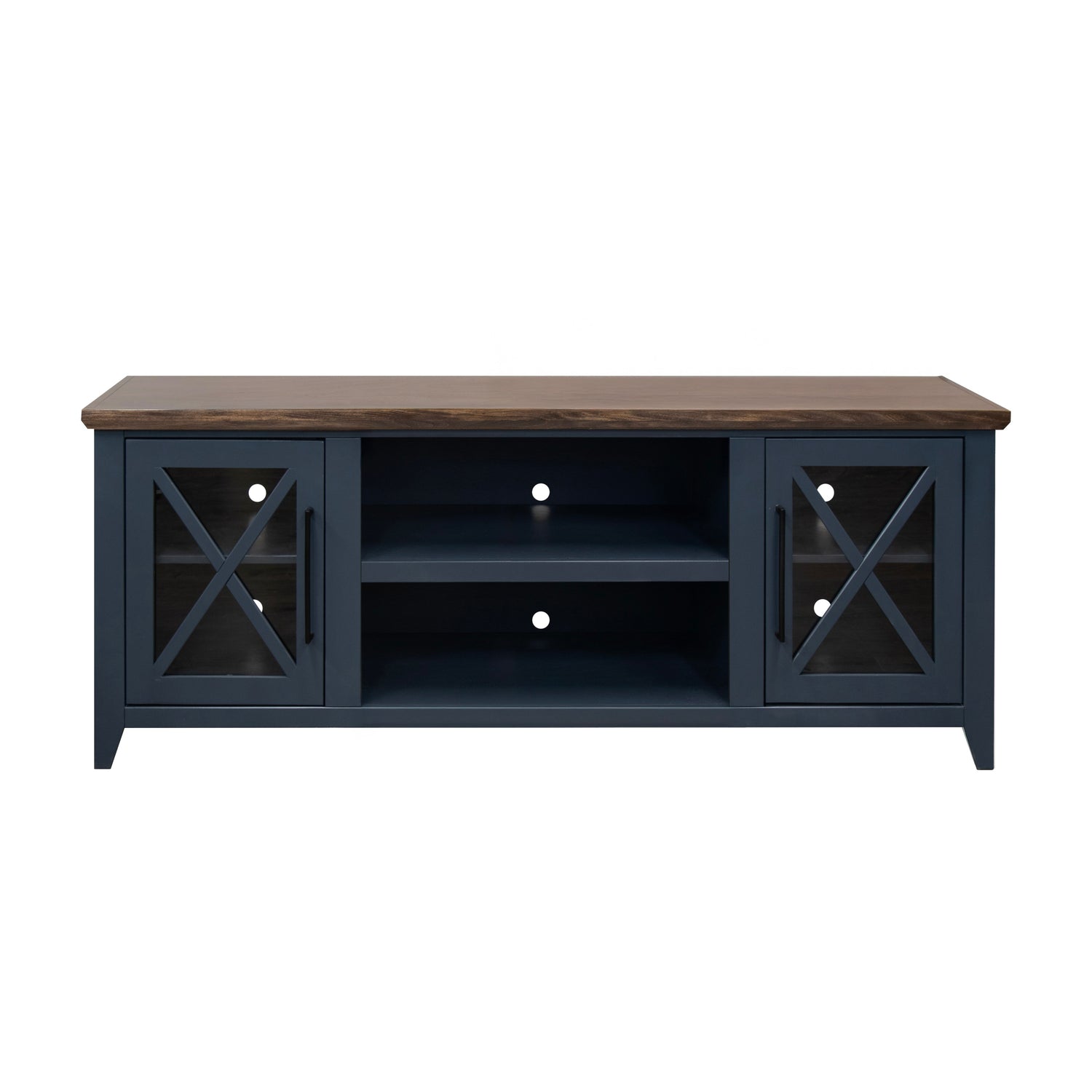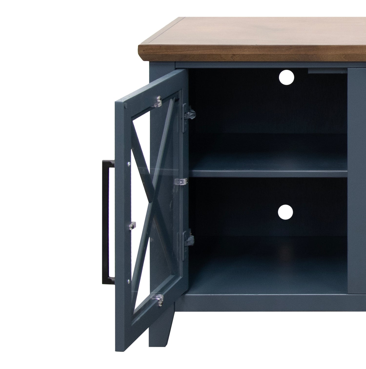 Ithaca 66 inch TV Stand Console, For TVs up to 80 inches, No Assembly Required, Blue and Bourbon Finish