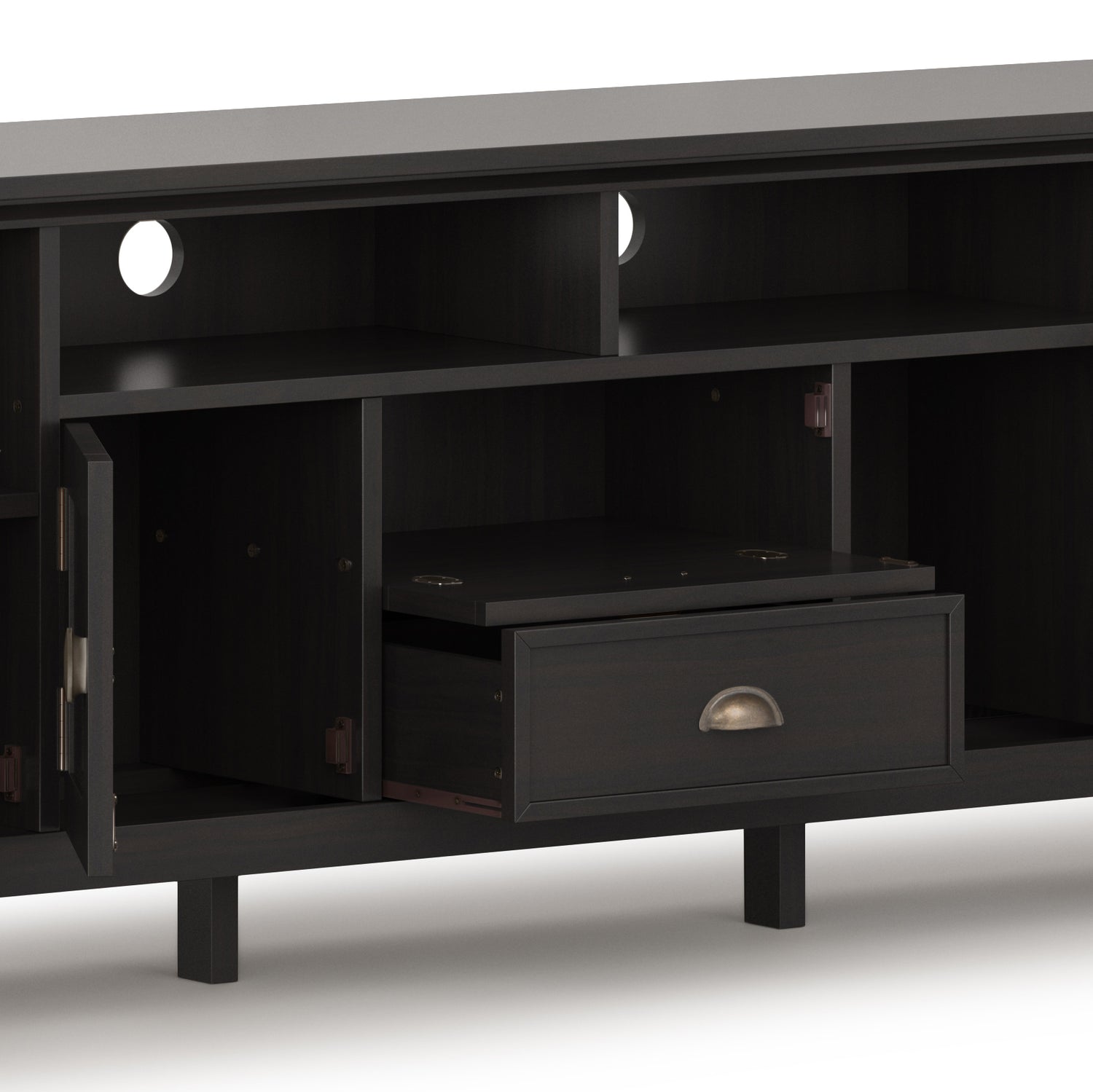 - Cord Management: Integrated cord management cut‑outs guide cables neatly out of sight, promoting a tidy appearance and simplifying the setup of electronics behind your media stand.