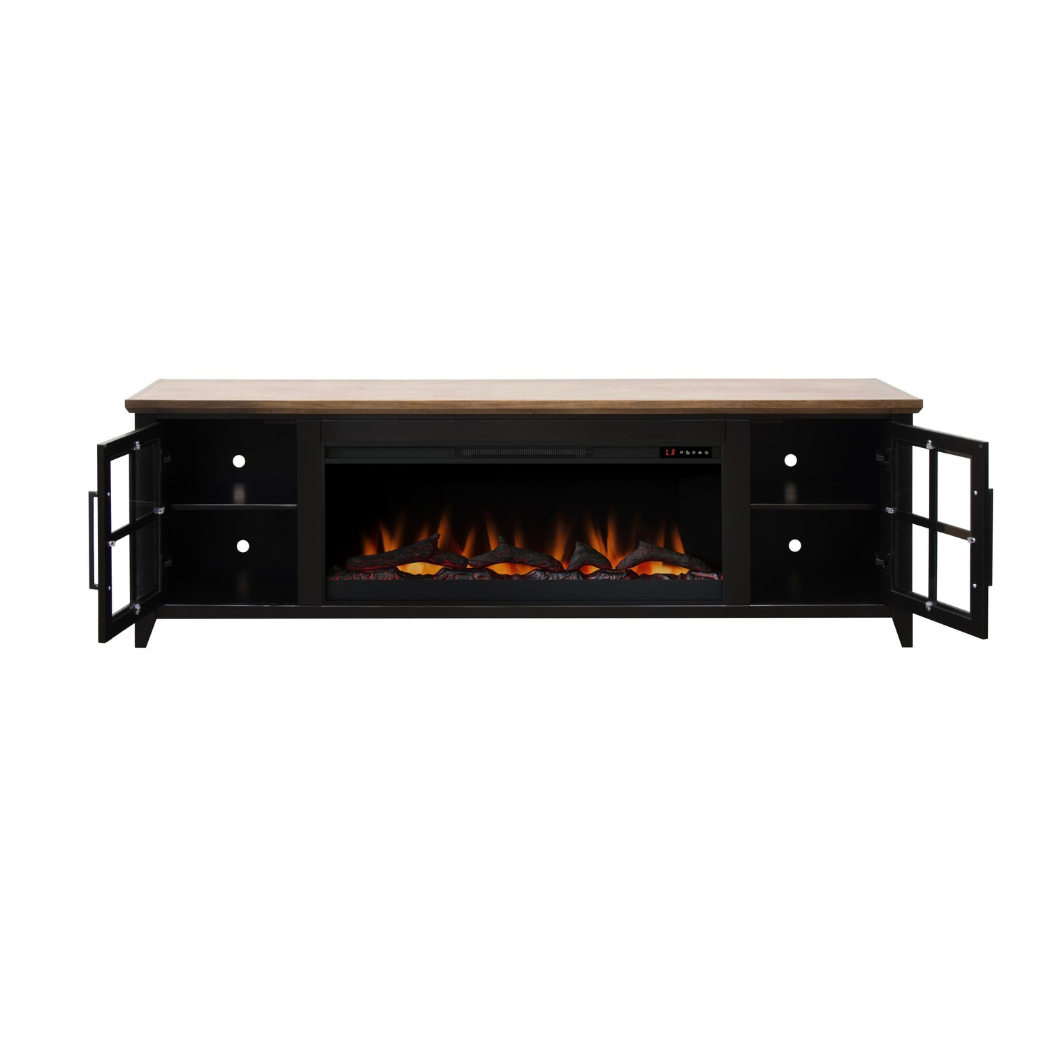 Providence 83 inch Fireplace TV Stand, For TVs up to 95 inches, Minimal Assembly Required, Black and Bourbon Finish is available