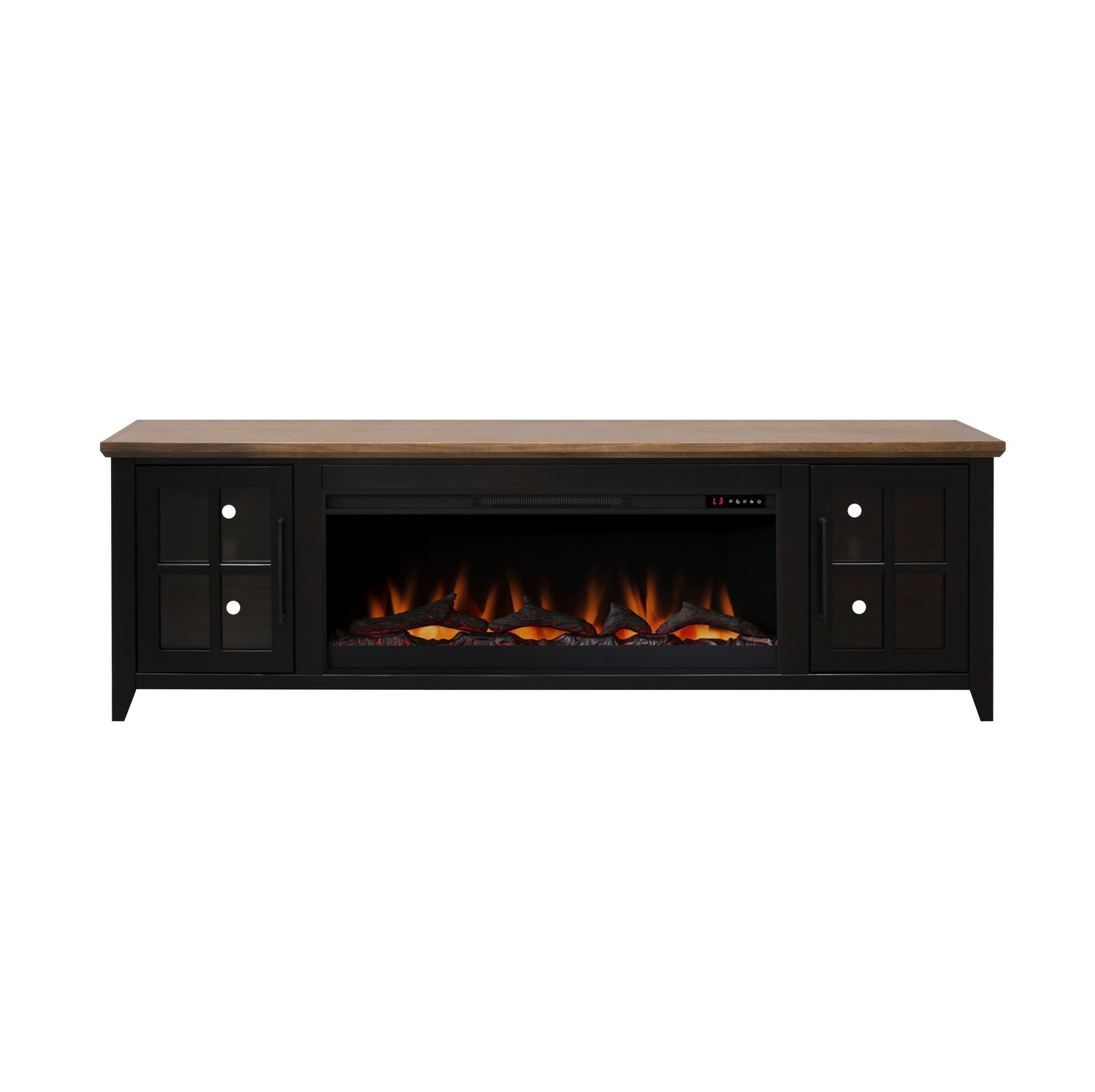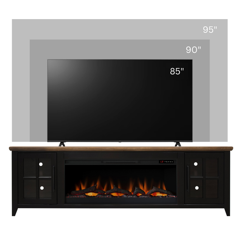 Providence 83 inch Fireplace TV Stand, For TVs up to 95 inches, Minimal Assembly Required, Black and Bourbon Finish