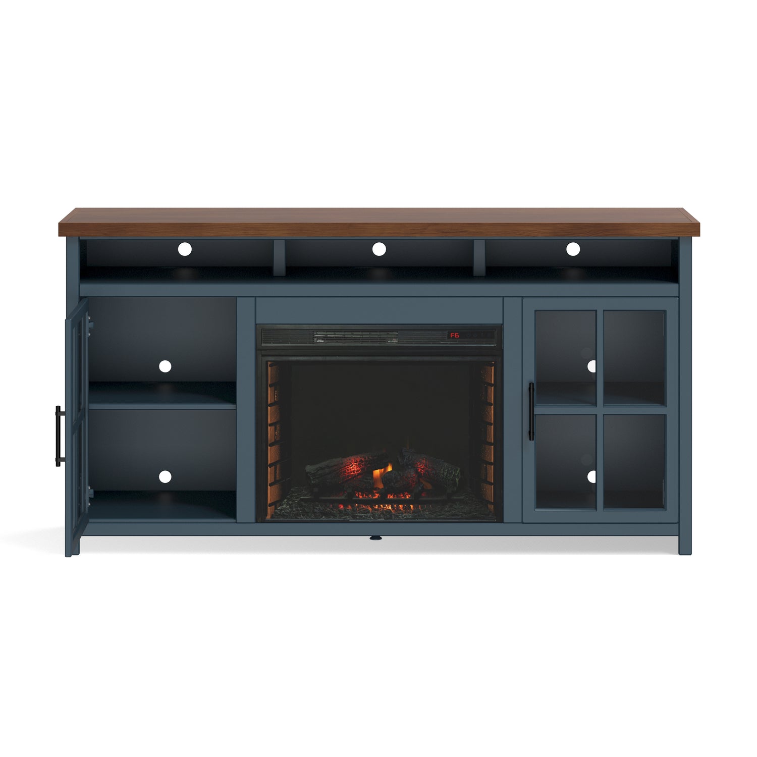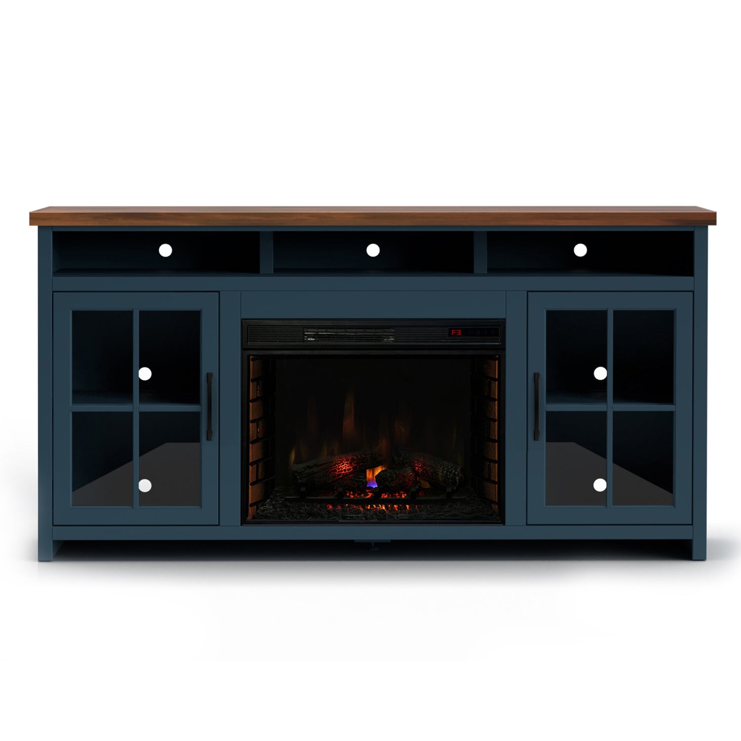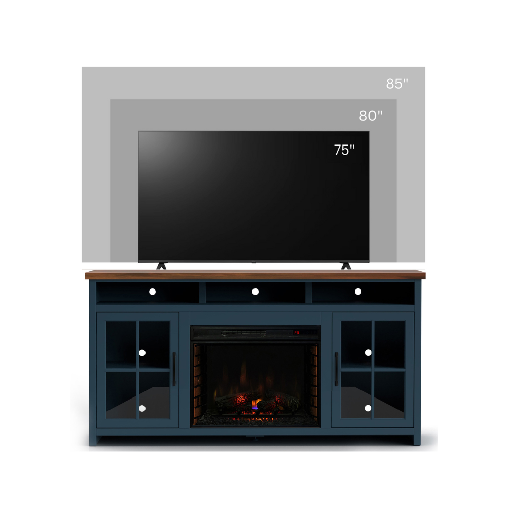 74 inch Fireplace TV Stand Console for TVs up to 85 inches, Minimal Assembly, Blue Denim and Whiskey Finish is available
