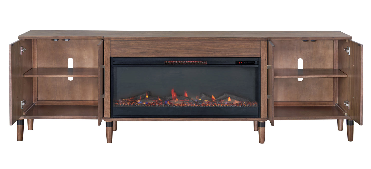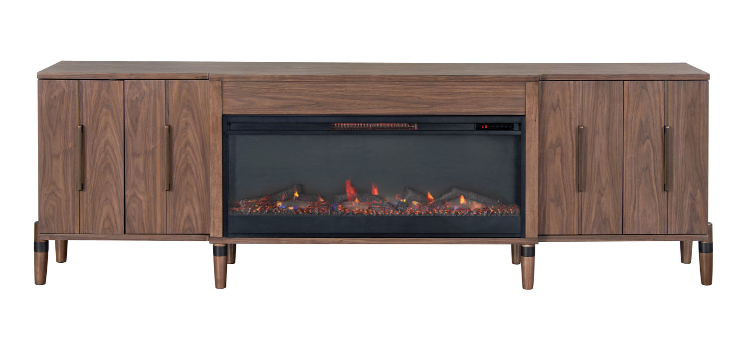 Tranquility 94 inch Fireplace TV Stand, for TVs up to 100 inches, Minimal Assembly, Walnut Finish is available