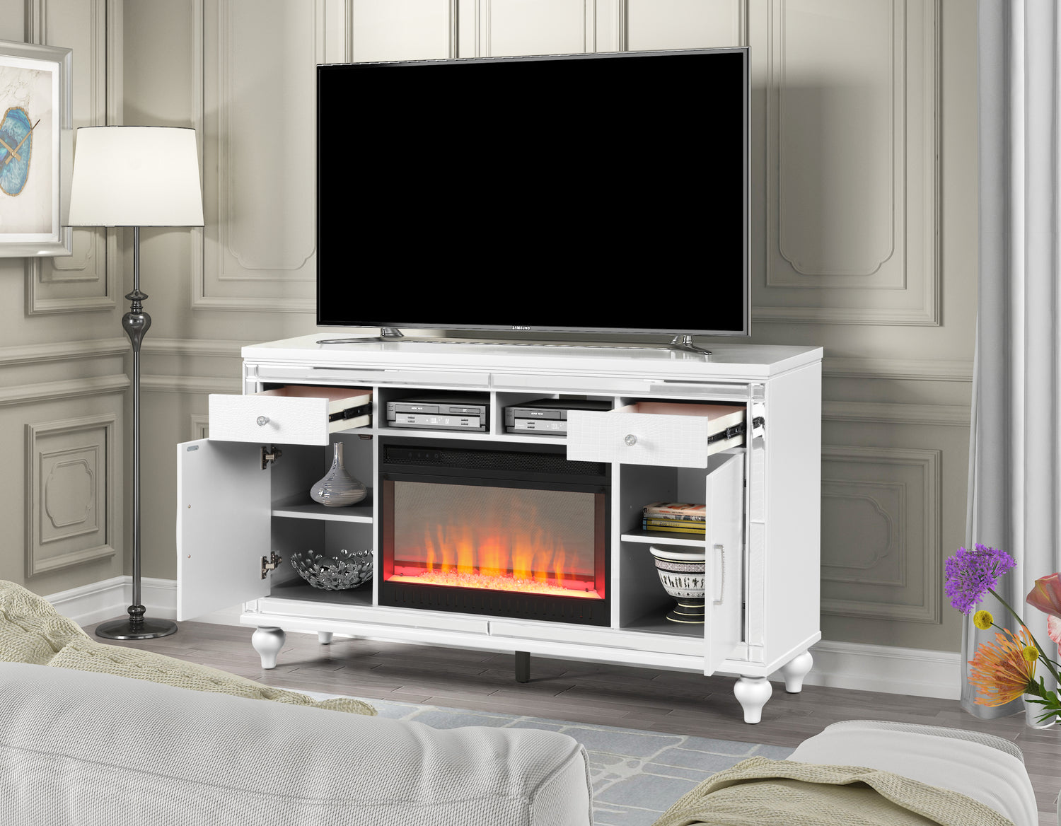 TV Stand With Electric Fireplace in White