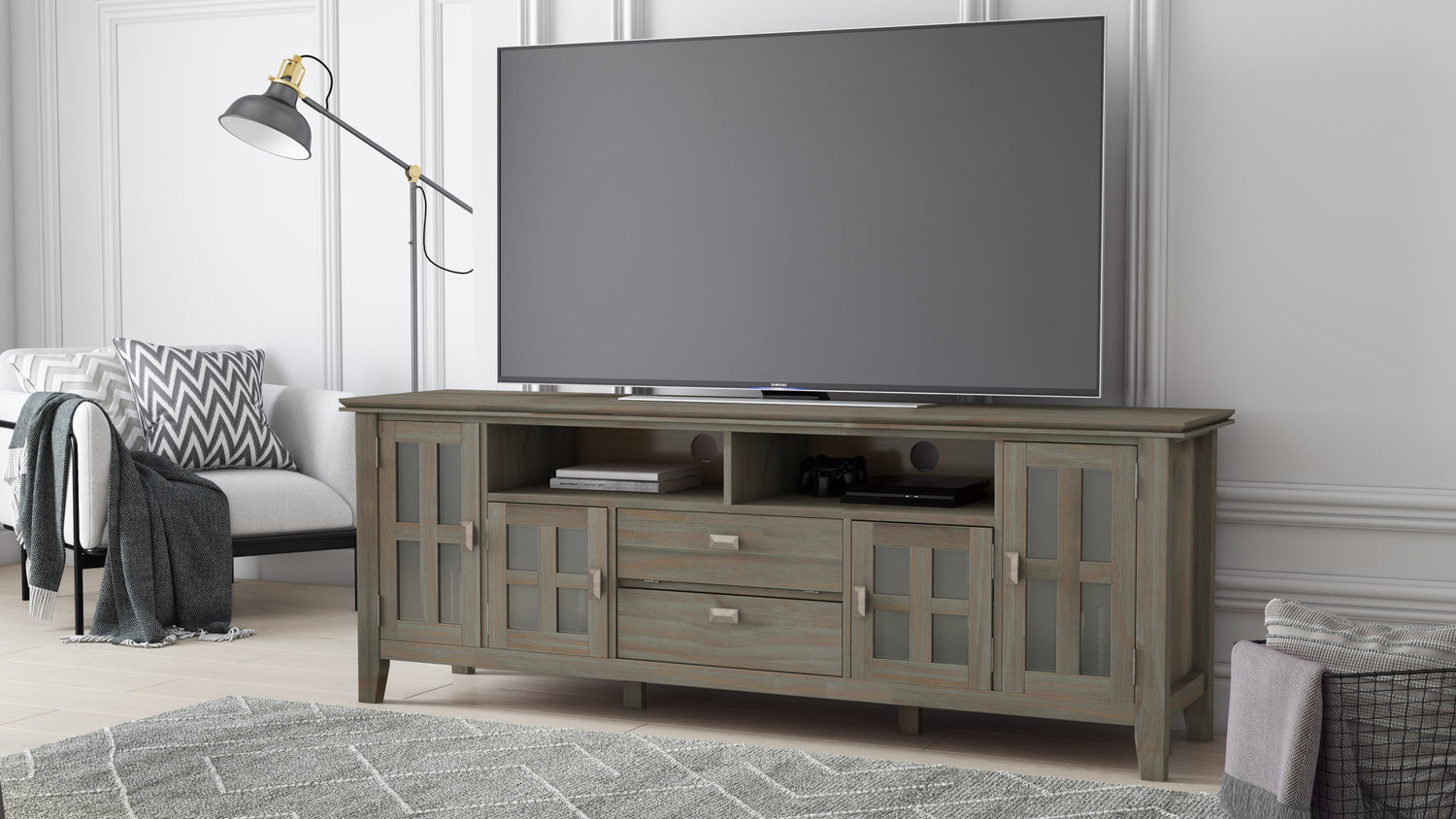 Artisan 72 inch Wide Solid Wood TV Stand in Distressed Grey For TVs up to 80 inches is available