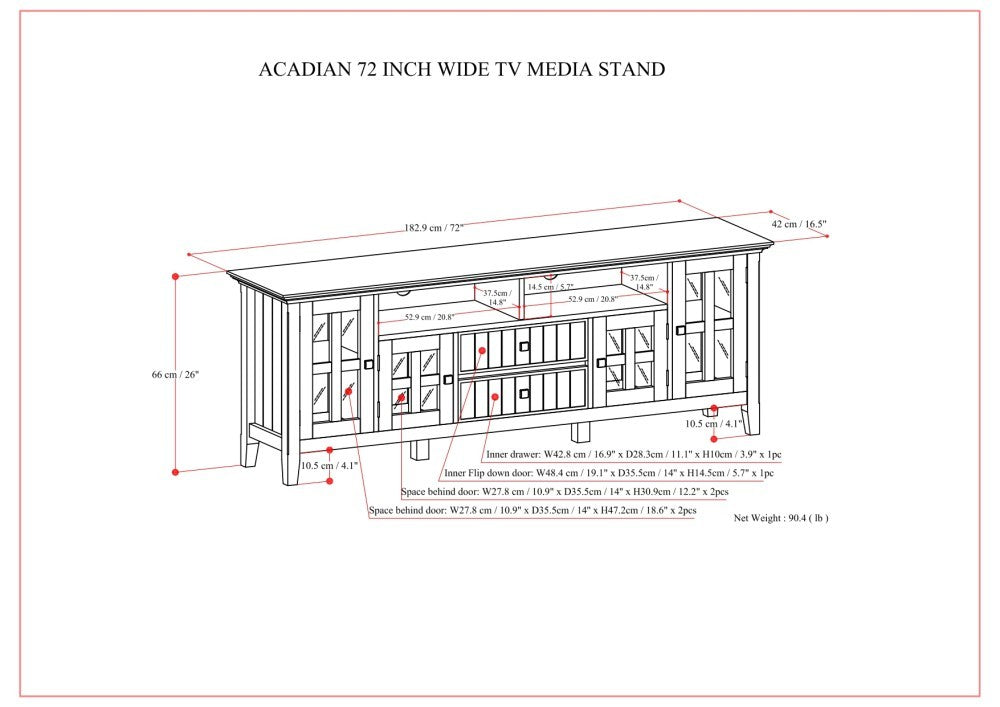 - Dimensions: 16.5' D x 72' W x 26' H – An extra-wide design that comfortably supports flat-screen TVs up to 80 inches, perfect for expansive living rooms, media rooms, or entertainment spaces.