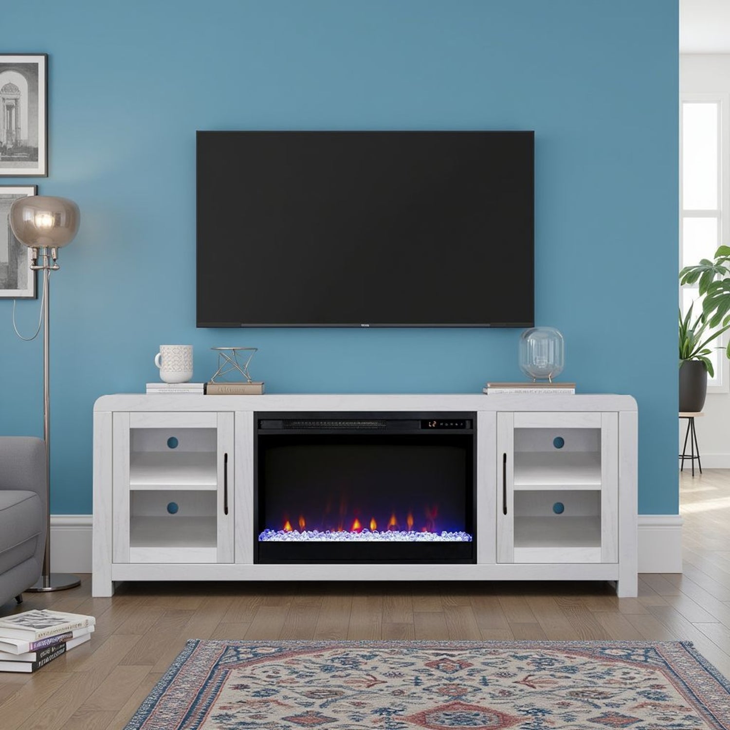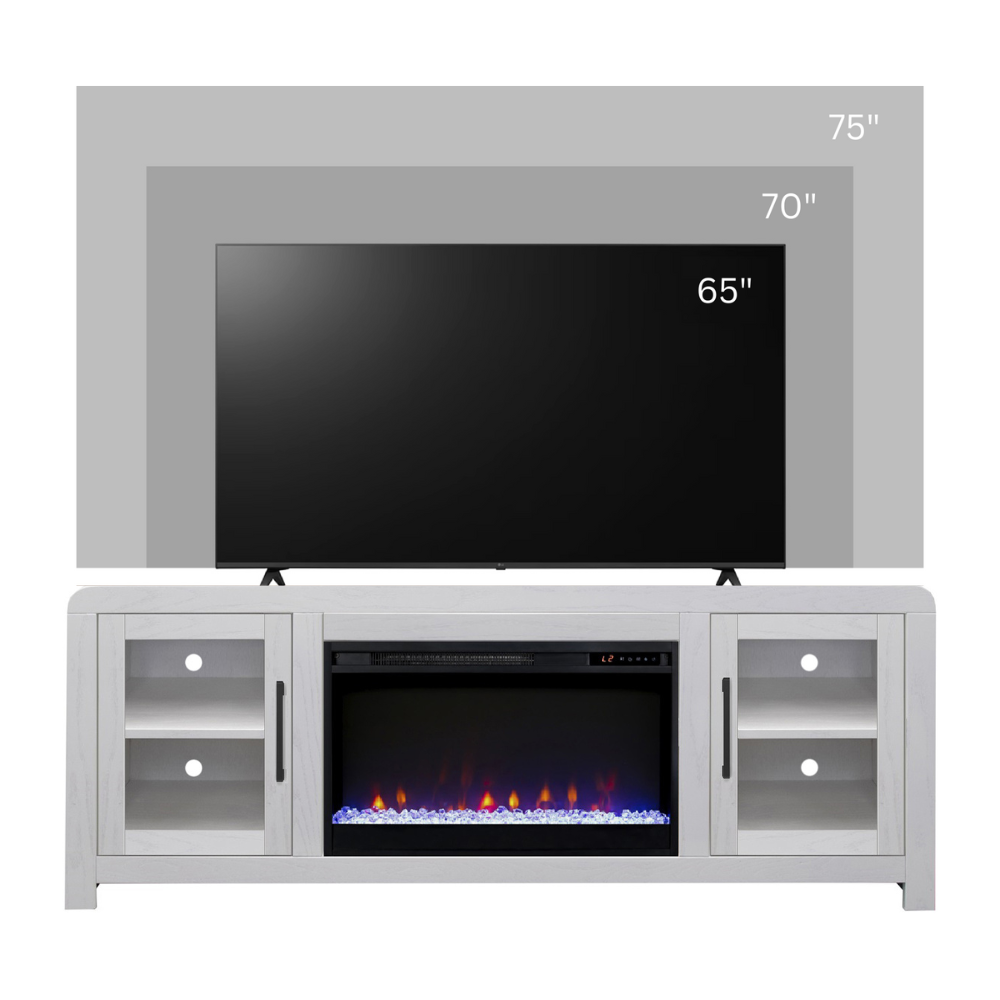 Haven 65 inch Fireplace TV Stand with Glass Doors, for TVs up to 75 inches, Minimal Assembly, White Finish is available