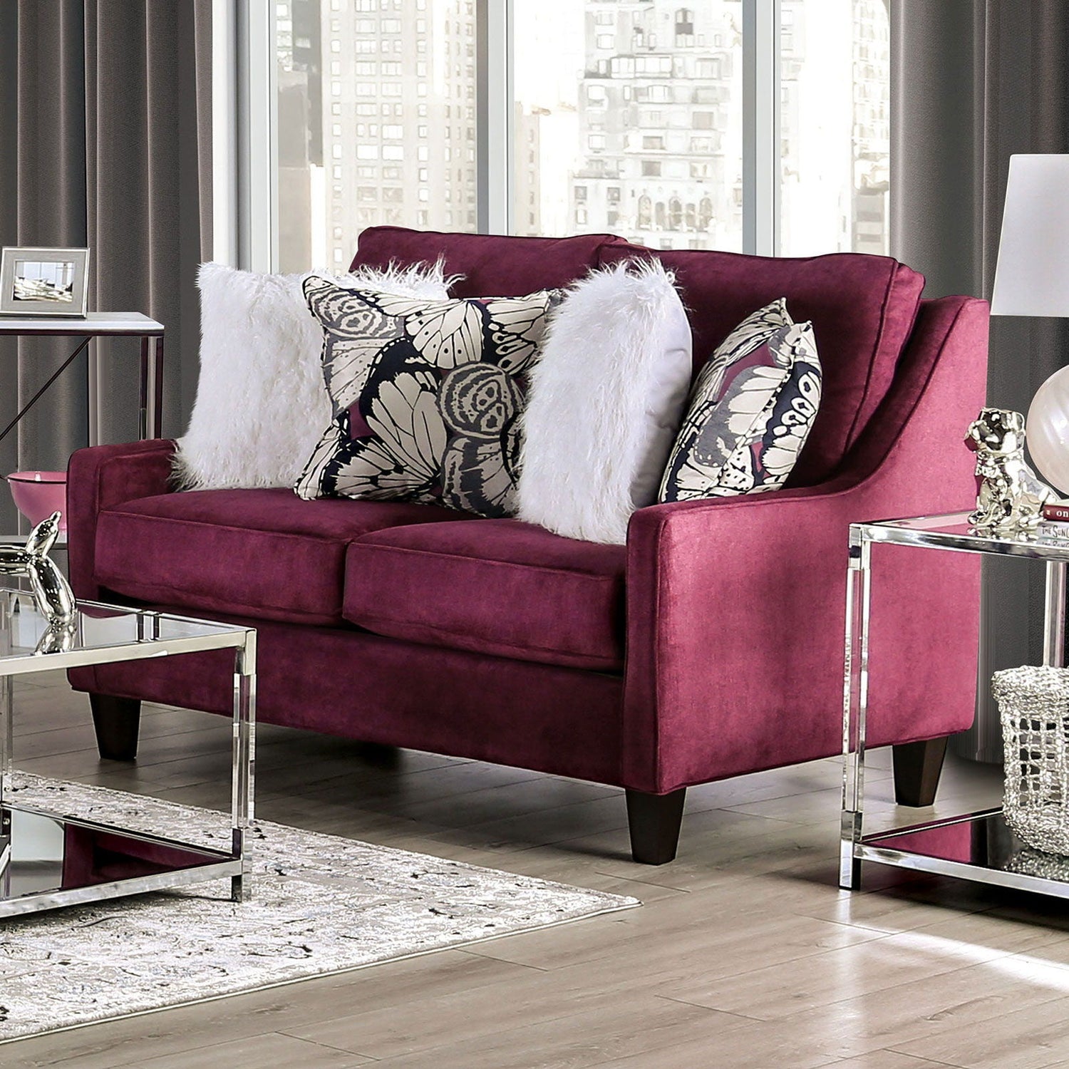 Jillian - Sofa & Loveseat - Plum / Ivory / White