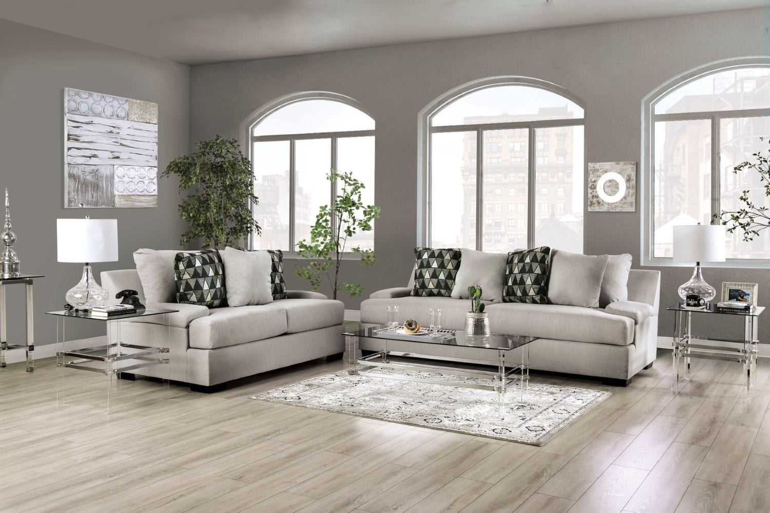 Reigate Transitional Light Gray Chenille Sofa and Loveseat by Furniture of America