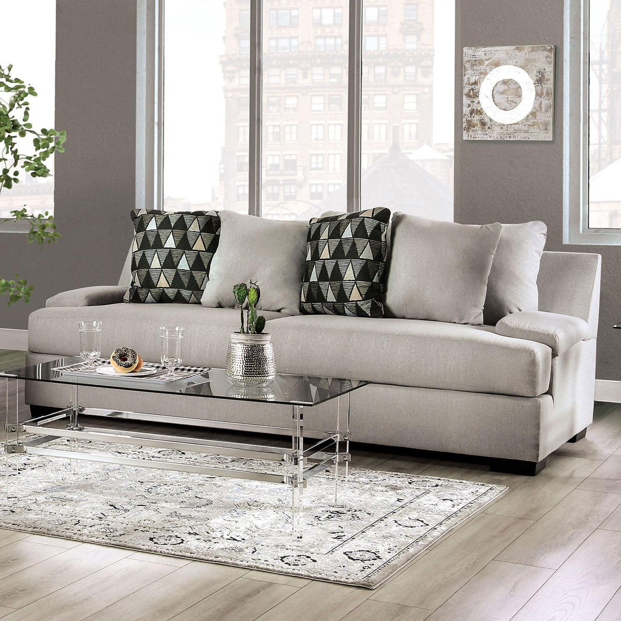 Reigate Transitional Light Gray Chenille Sofa and Loveseat by Furniture of America is available
