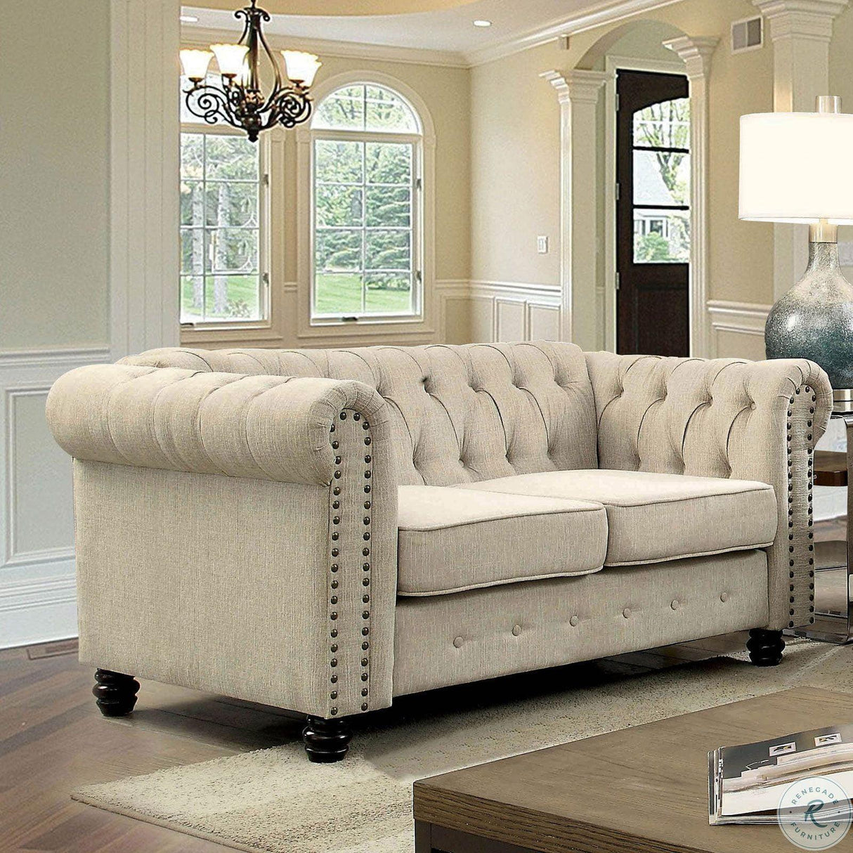 Winifred Transitional Ivory Chenille Sofa and Loveseat by Furniture of America is available