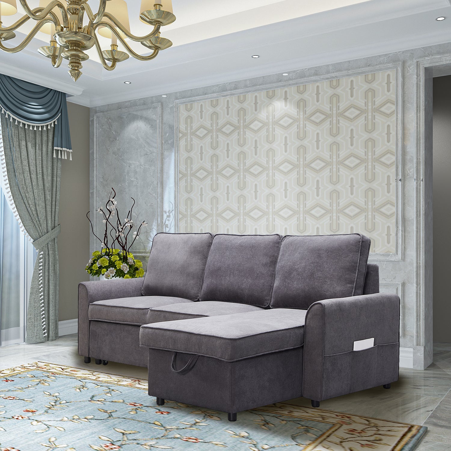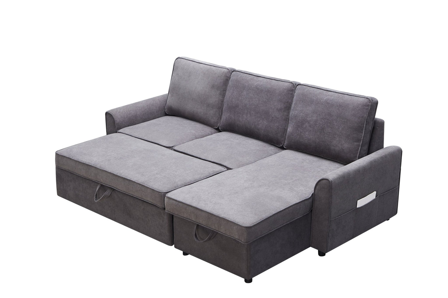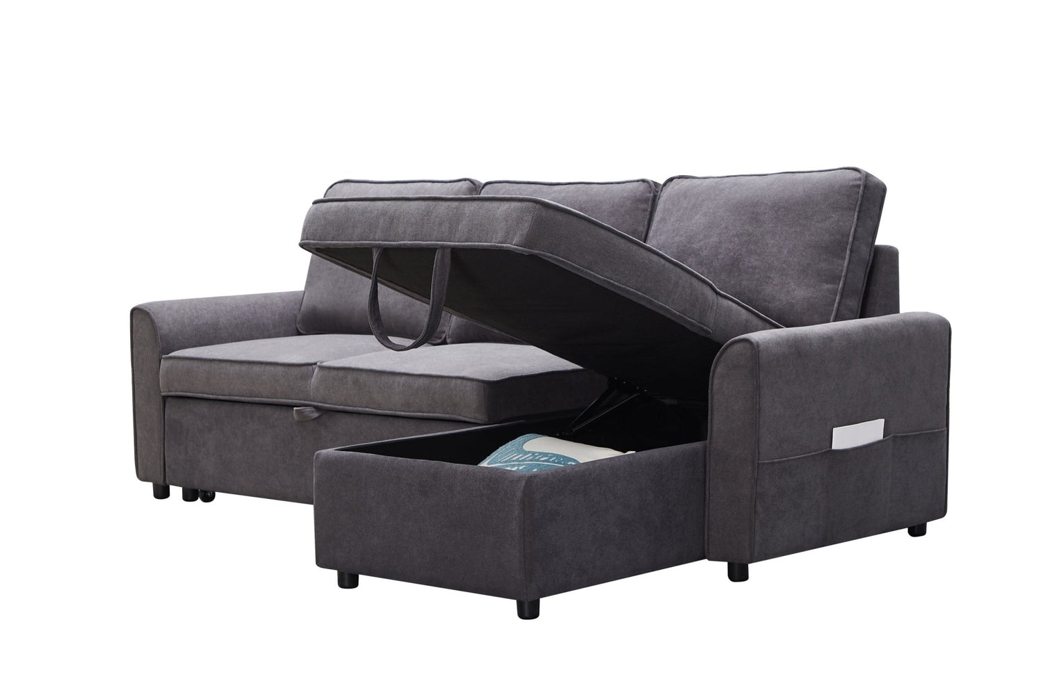Modern modular L-shaped sofa bed with chaise longue, reversible sofa bed with pull-out bed and storage cabinet, living room dark grey 4 seater linen fabric convertible sofa. 【Spacious Hidden Storage Box】: The storage recliner hides keeps sheets, blankets and pillows clean and convenient under its seat. 【Convertible Roller Bed】: The trundle bed mechanism hidden under the double sofa helps the sofa to easily pop up a comfortable double/double bed for 2 people. Two shoulder strap handles and bottom wheels make operation smooth and easy. 【FUNCTIONAL FURNITURE FOR SMALL SPACE】: With a modular sofa, you will get a compact L-shaped sofa with a full reclining chaise longue and a double bed. Suitable for small apartments, lofts.