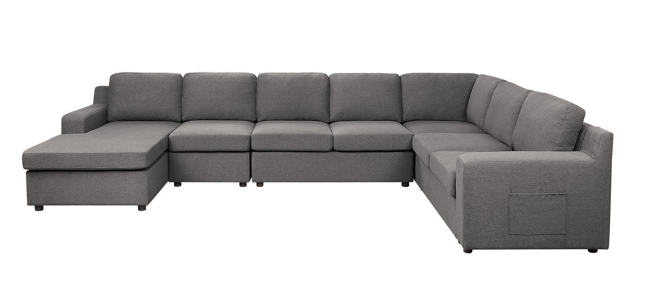 Waylon 145.5' Gray Linen 7-Seater U-Shape Sectional Sofa Chaise with Pocket