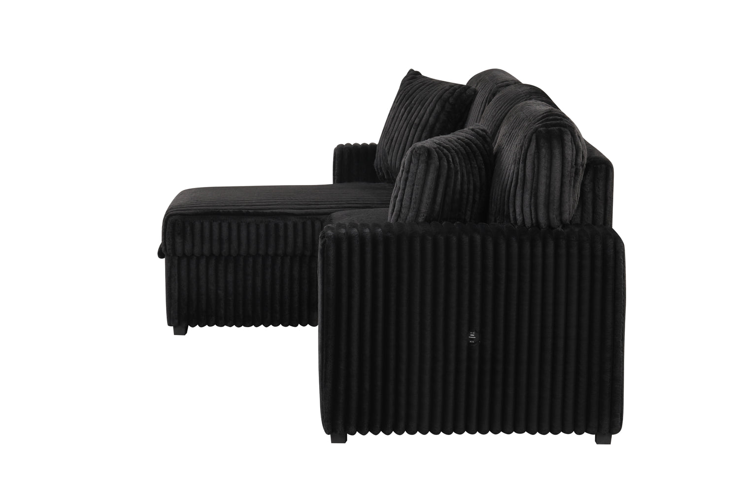 Plush Sectional Sofa W/ Pull Out Sleeper made with Velvet fabric- Black (NJ inventory)