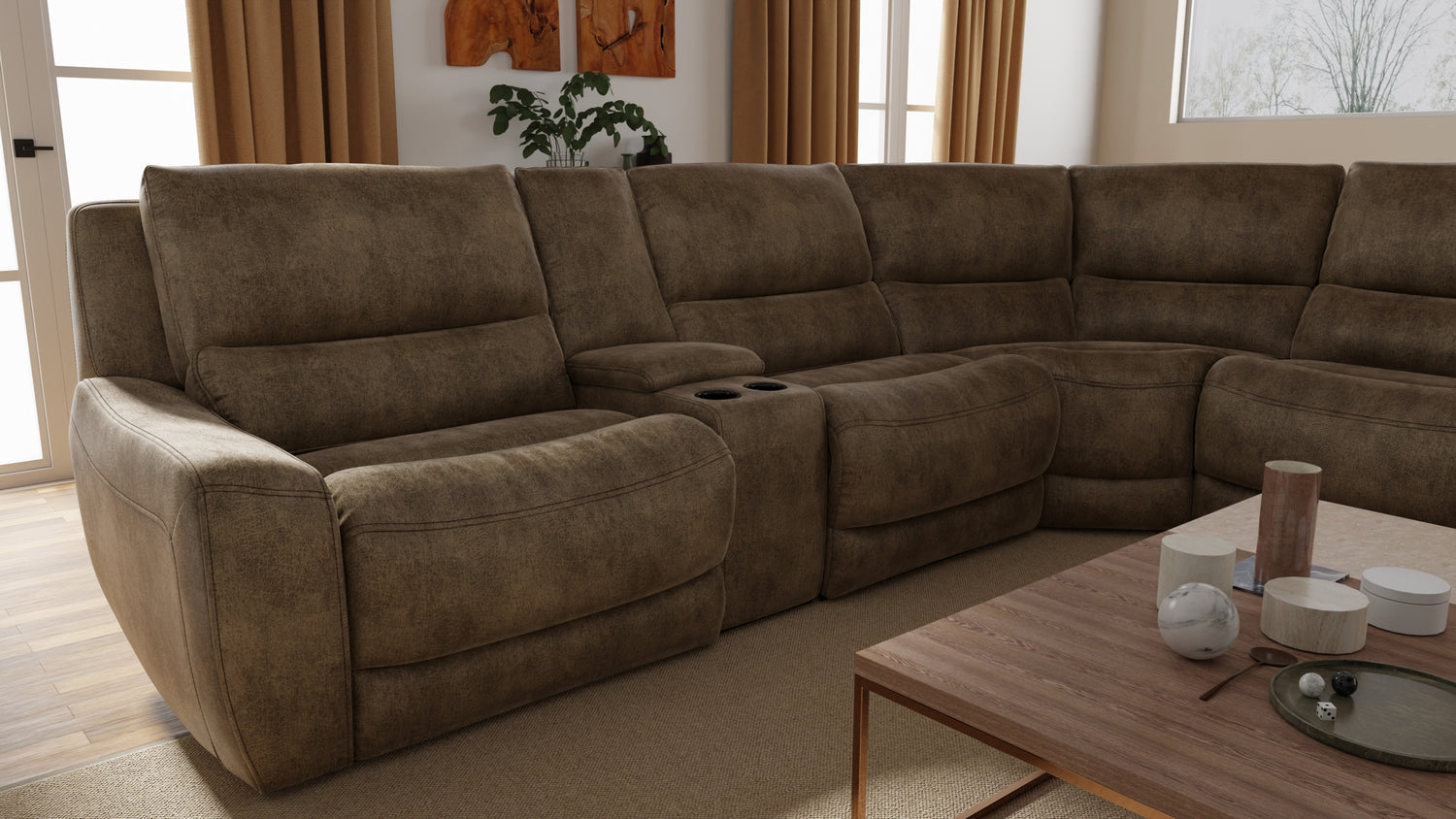 6-Piece Performance Fabric Power Reclining Sectional in Texas Slate is available