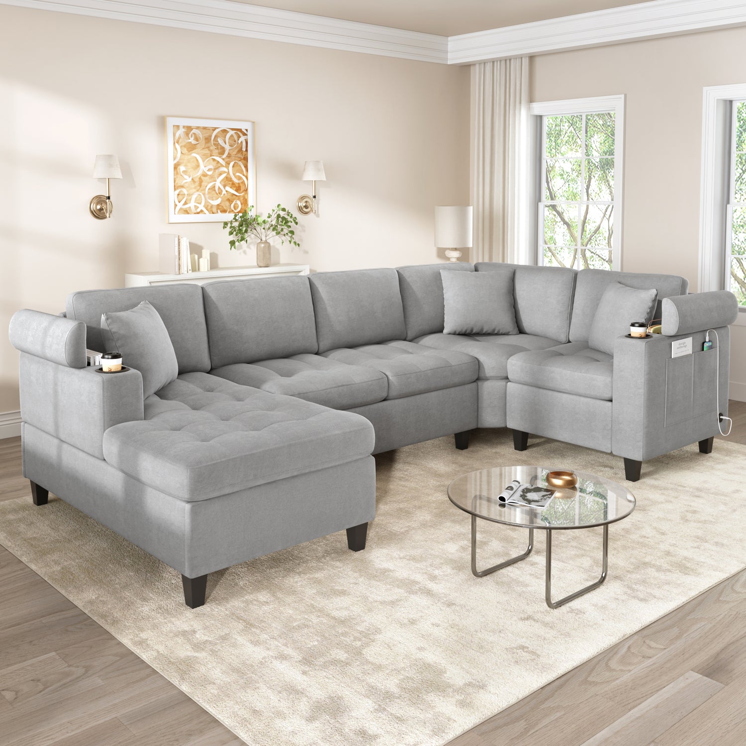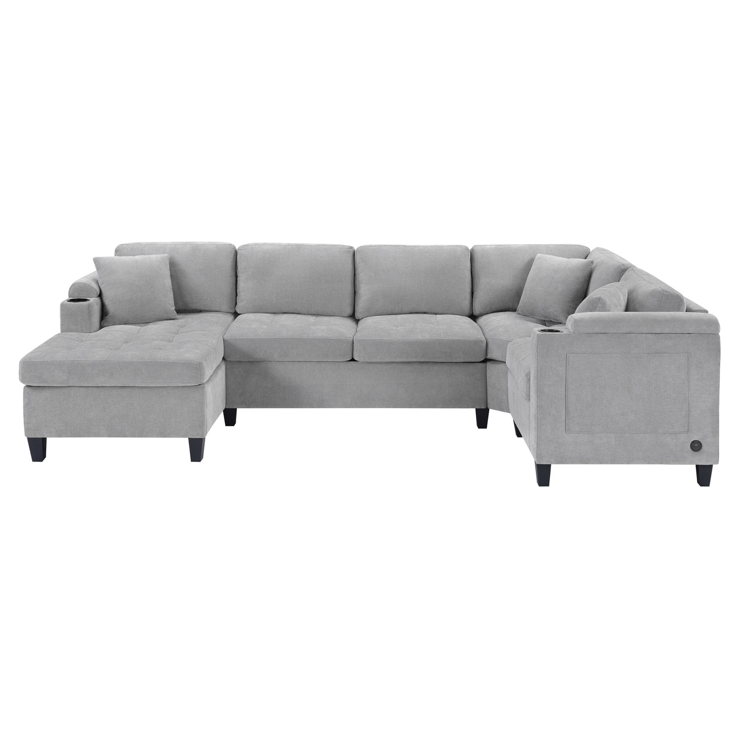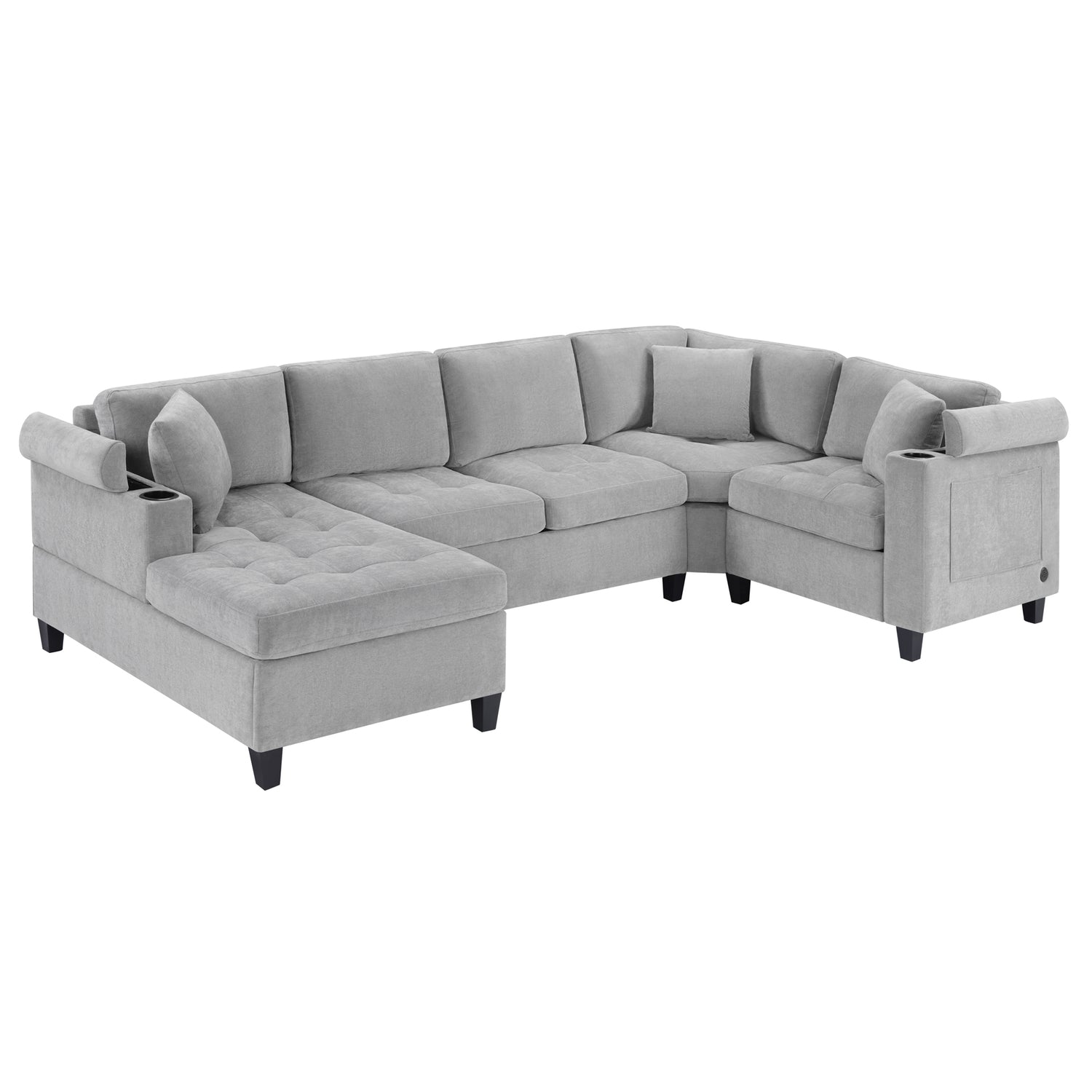 Modern U-shaped Sectional Sofa 115.7' Corner Living Room Couch with Built-in Cup Holders, Storage, USB Ports in Light Grey Chenille Fabric is available
