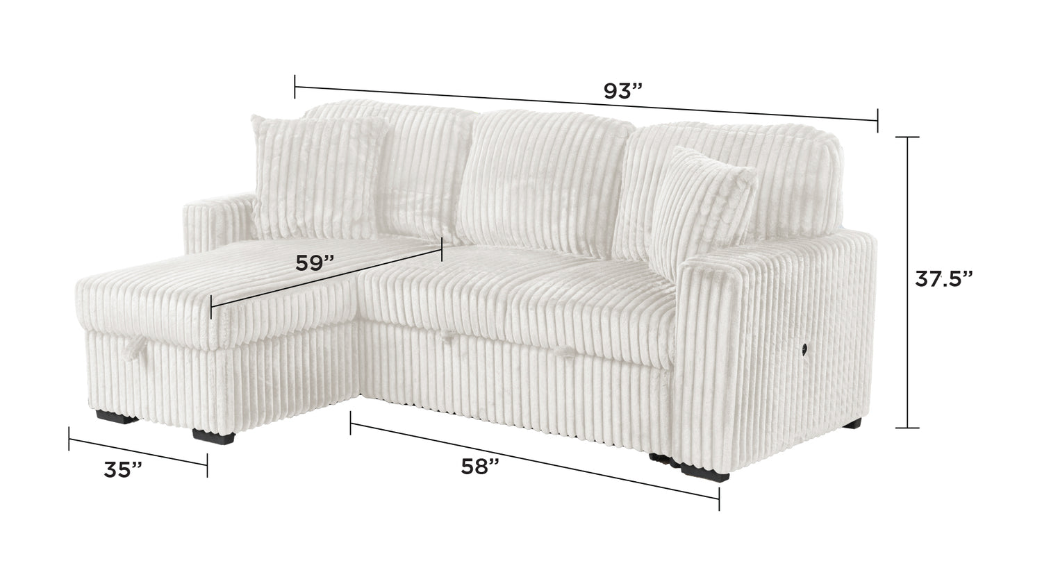 Plush Sectional Sofa W/ Pull Out Sleeper made with Velvet fabric- Cream (CA Warehouse inventory)